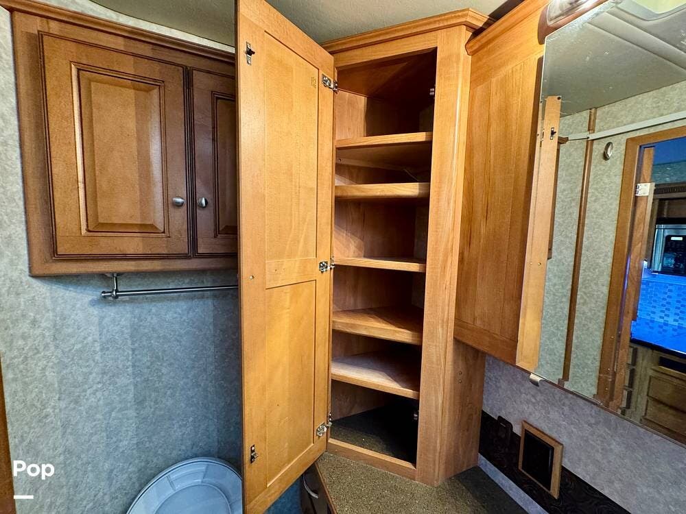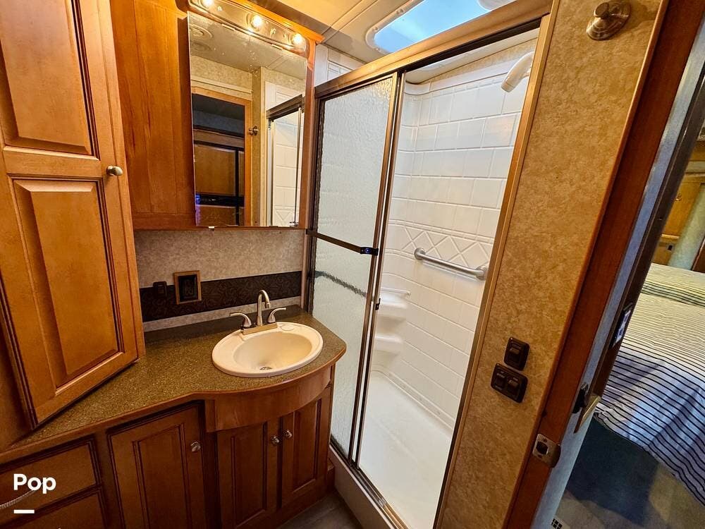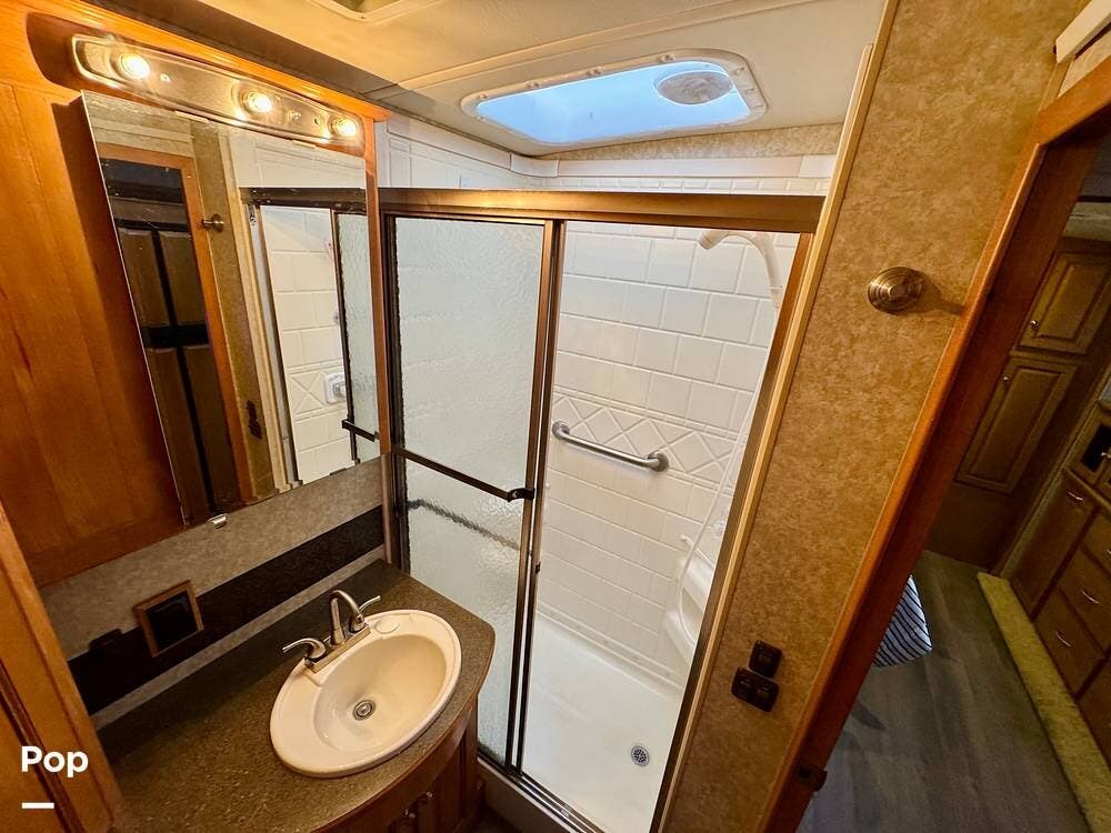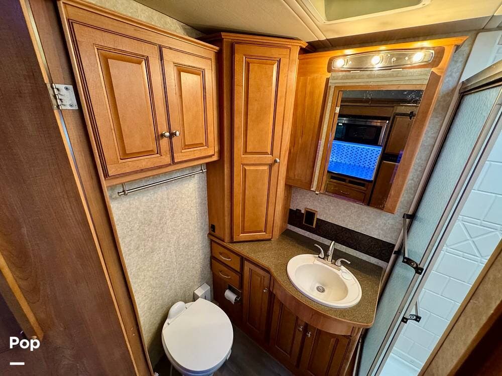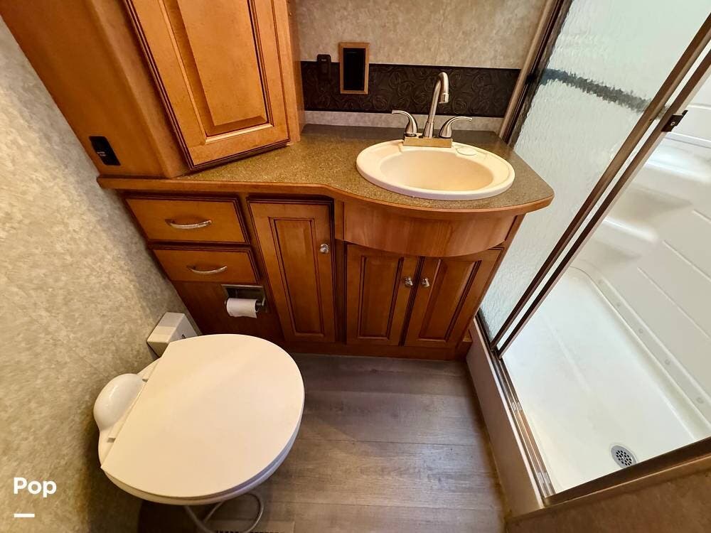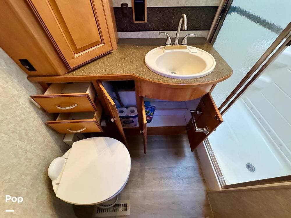 The bathroom is designed with practicality in mind and provides the essential amenities needed for traveling comfort. With its thoughtful layout and accessible fixtures, it offers the convenience of a full bathroom while on the road.
