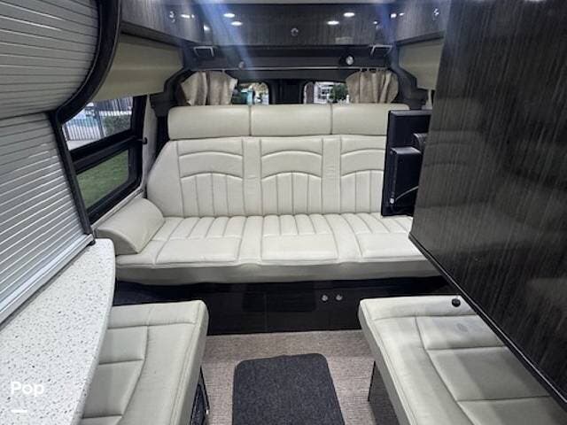 The Suite model is a well built, high-quality camper van with a luxury interior, including ultra leather seating, European-styled, high-gloss cabinetry, and stainless steel appliances. Front swivel captain chairs. Motorized sofa to convert to a 72x76 bed.