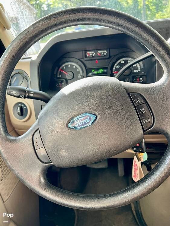 It is equipped with a 6.8 Liter Triton V-10 engine, providing plenty of power for all your adventures, and a 5,000-pound towing capacity on an Econoline E450 chassis that offers smooth handling and a very stable ride.