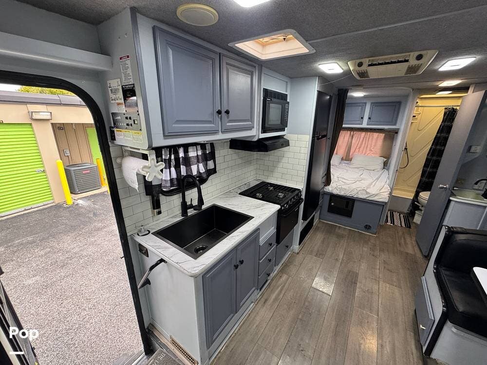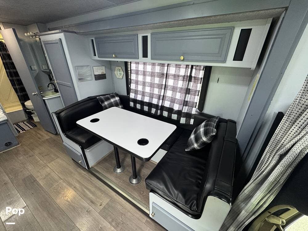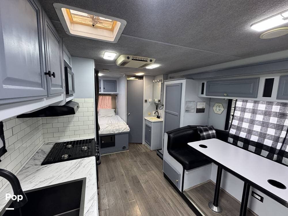 Inside, you'll find a remodeled interior with painted cabinets, doors, and walls, plus freshly reupholstered front seats and dinette cushions that give the space a clean, updated feel. The coach sleeps up to six, featuring a rear bed, a cab-over bunk, and a sleeper dinette that's perfect for a family of four or two traveling couples.