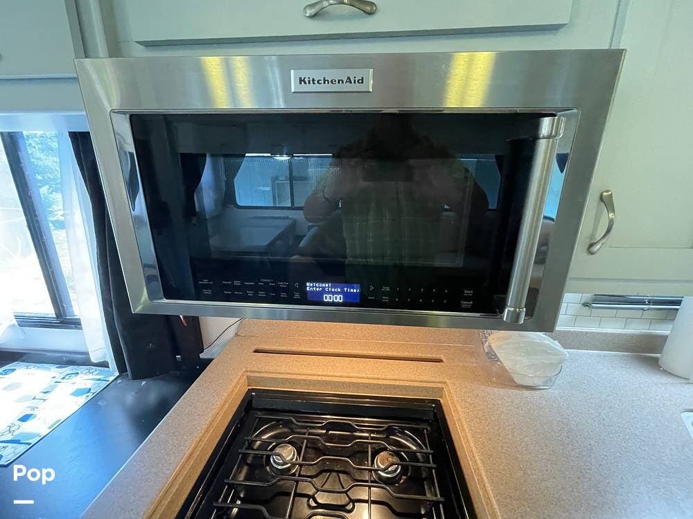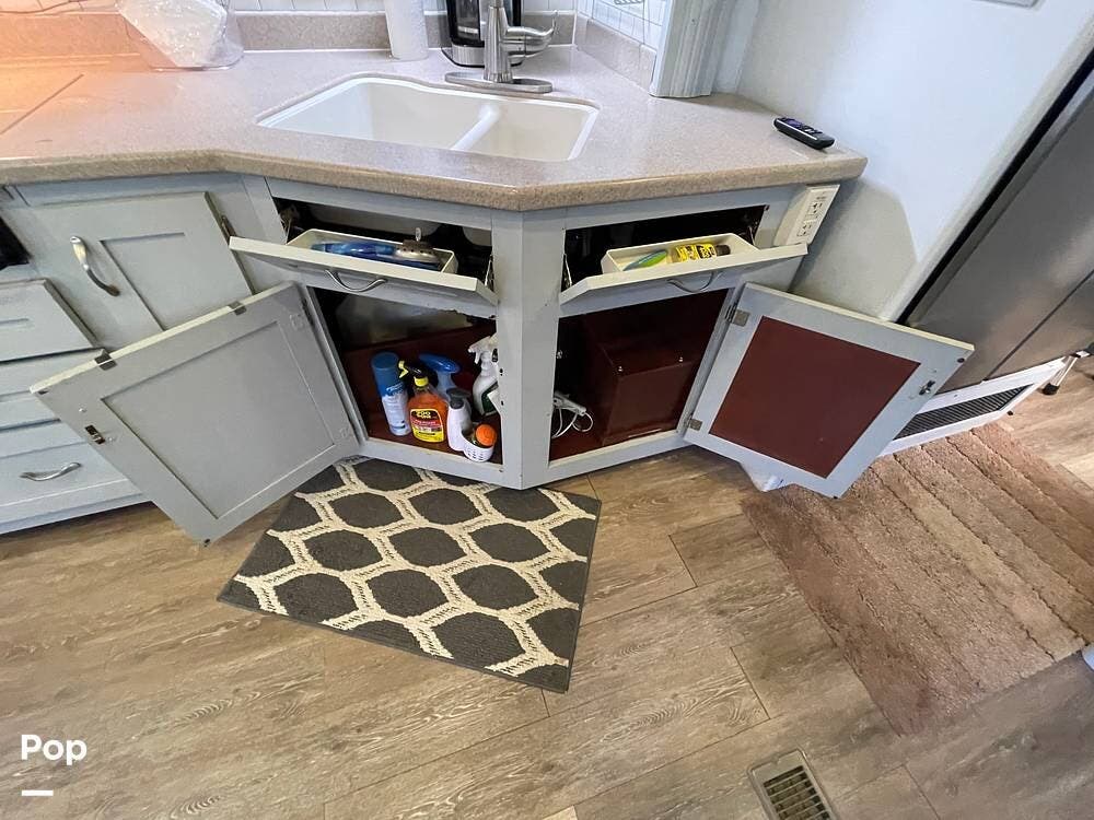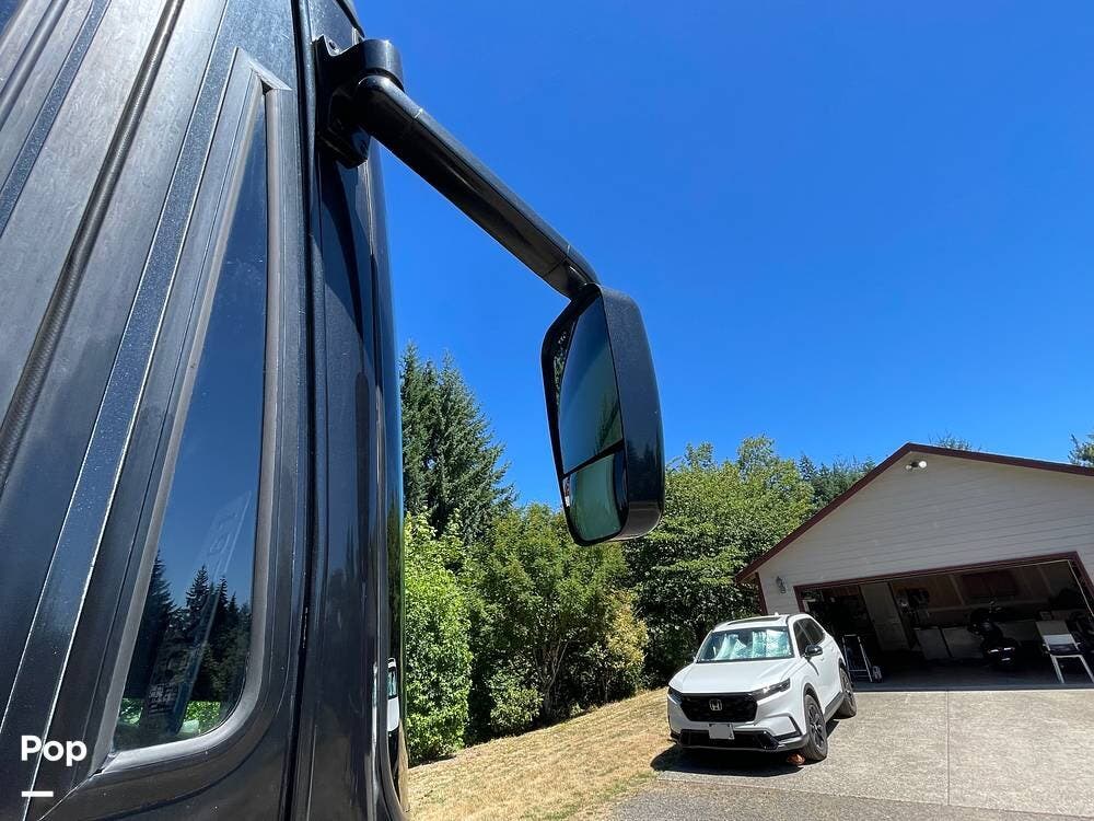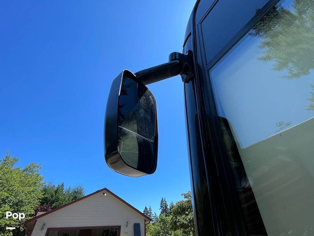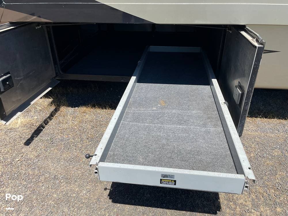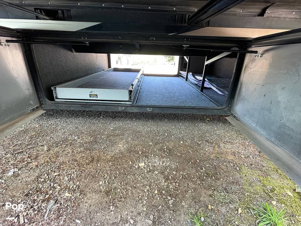 Four slide-outs expand the living and sleeping space, and undercarriage storage is available for additional gear with a large slide-out try accessible from both sides. Automatic leveling jacks and a rearview camera system assist with setup and maneuvering.