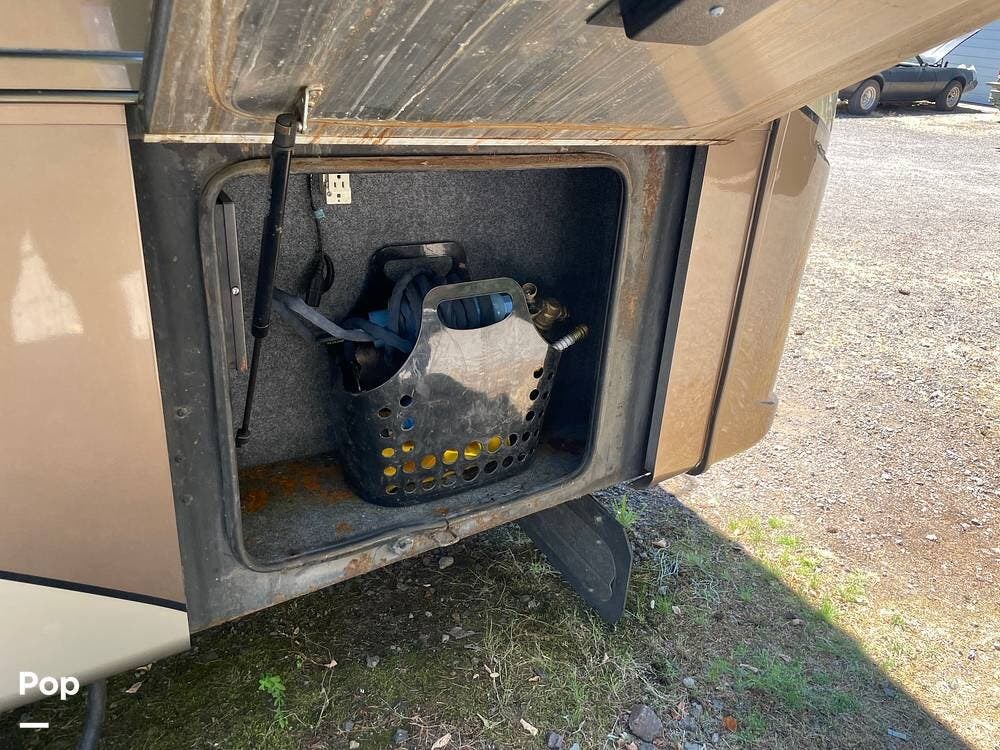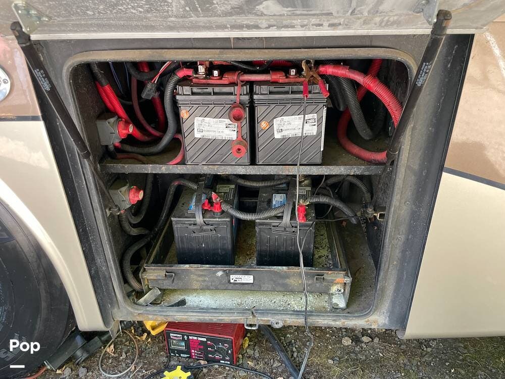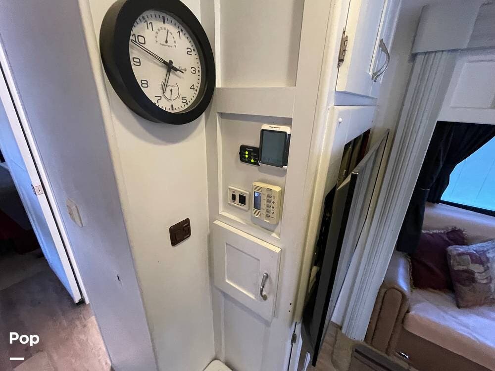 The coach includes a washer/dryer hook-up, dual air conditioners, and central heating.