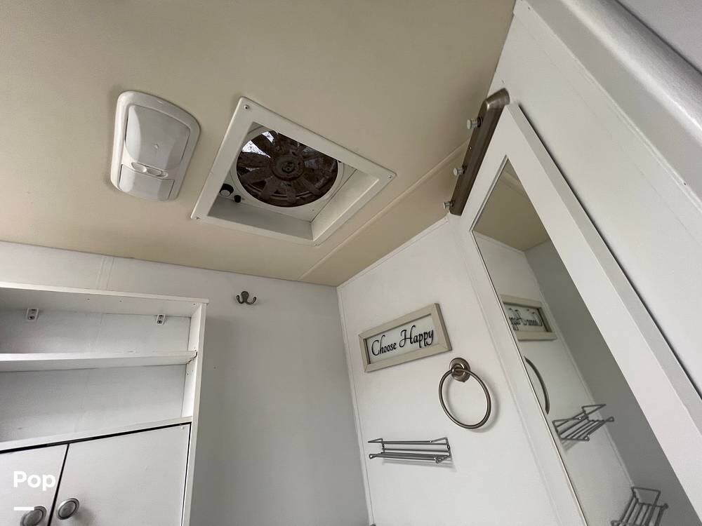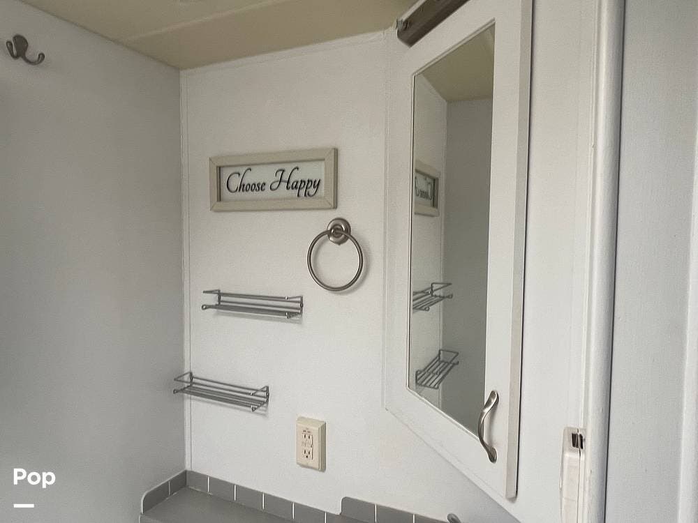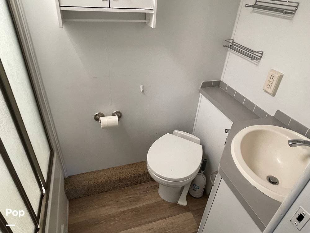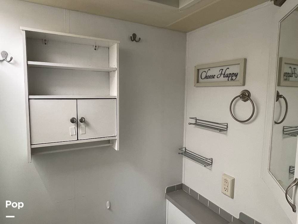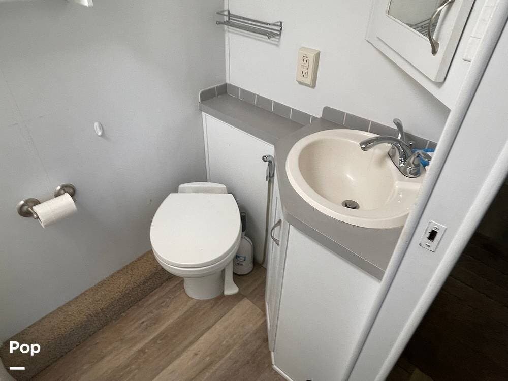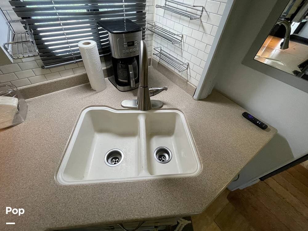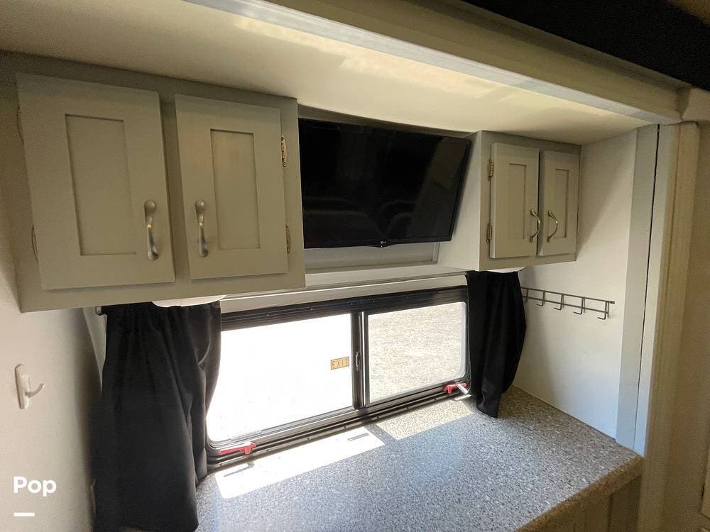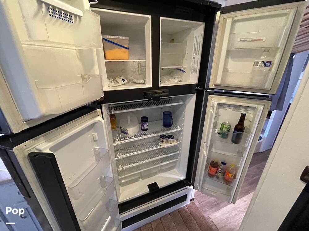 Inside, you'll find a layout designed with both comfort and practicality in mind. The bunkhouse configuration provides sleeping options for families or groups, and the living area includes a sofa, a dinette, and a television for entertainment.