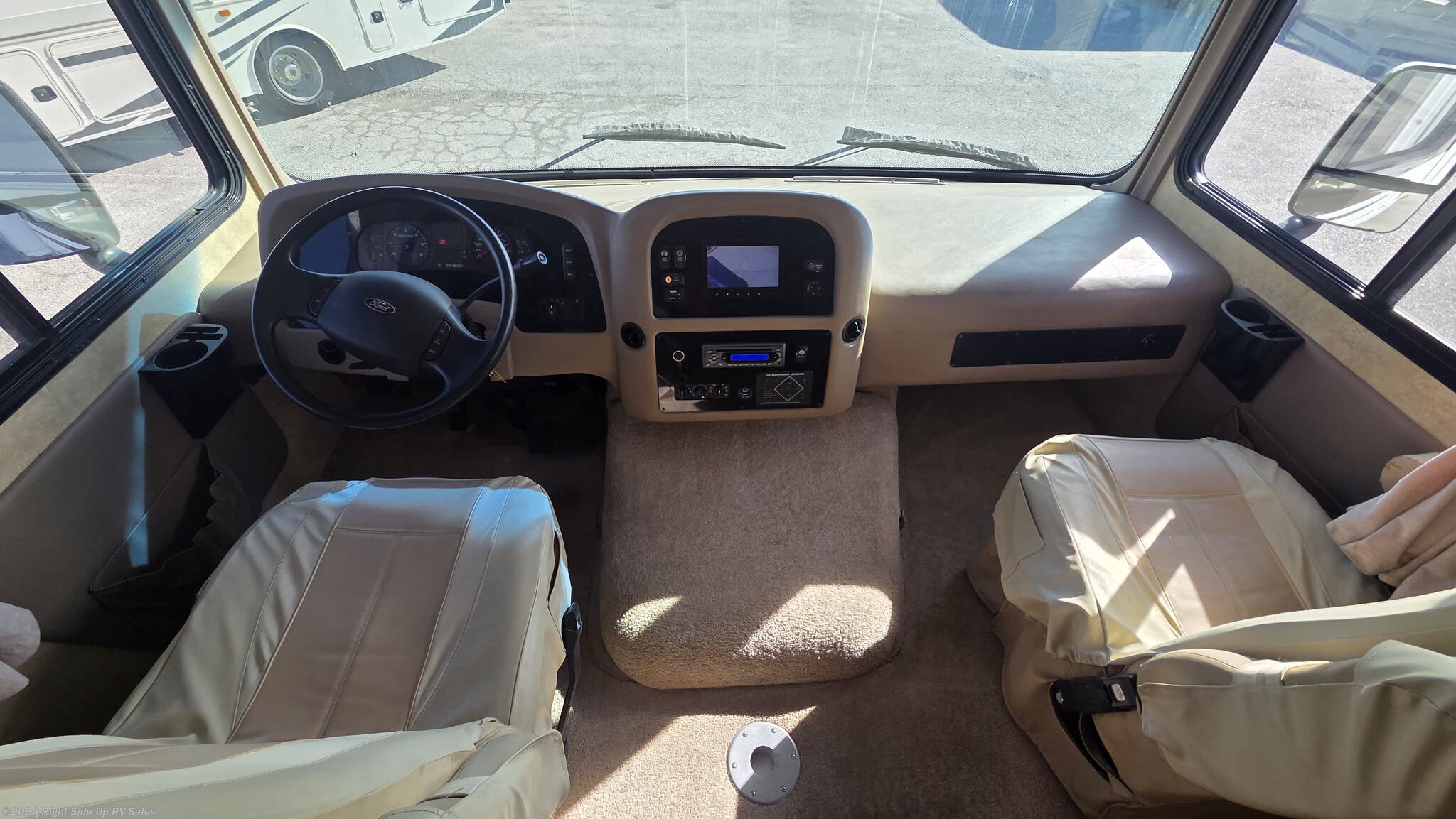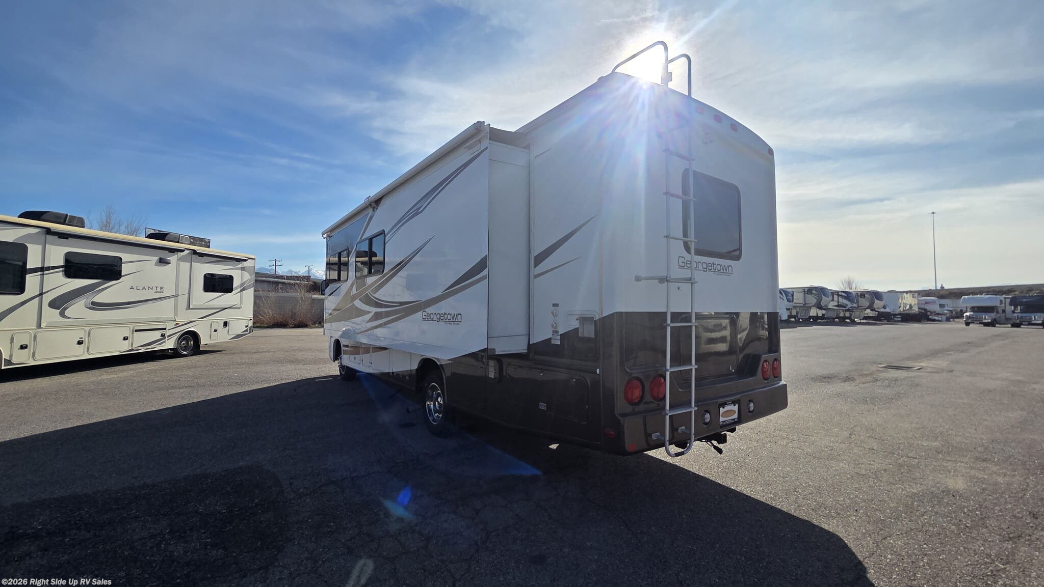 This Georgetown 300S is a strong option for buyers looking for a well-equipped Class A motorhome with automatic leveling, dual ducted A/Cs, heated tanks, table-and-chairs dining, and dependable Ford V10 power.