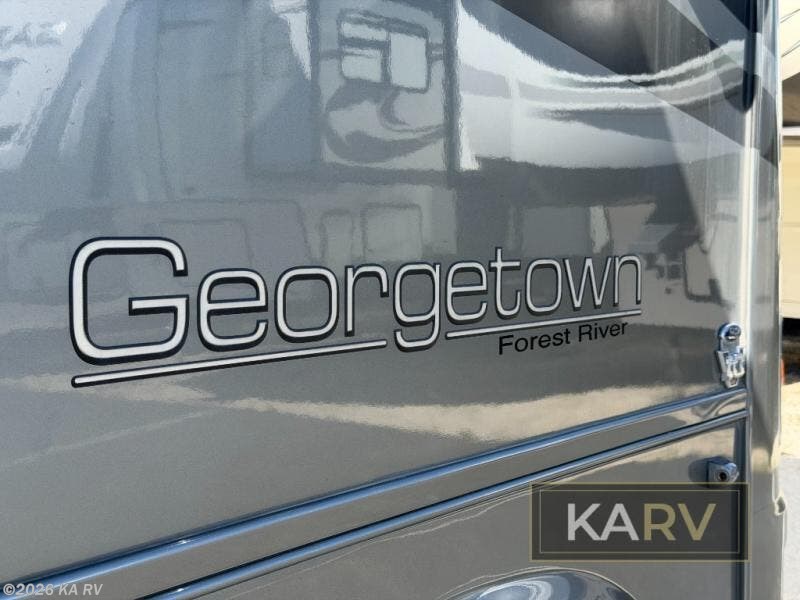 Double Slide Georgetown Class A by Forest River, Rear King Bed Slideout, Dbl. Ward./Pantry/Refrig./3 Burner Range w/Micro./Dbl. Kitchen Sink/U-Dinette Wall Slideout, Bath w/Corner Shower, Lav., Toilet, Linen, 32" TV, and More. Available Options May Include: TV in Bedroom