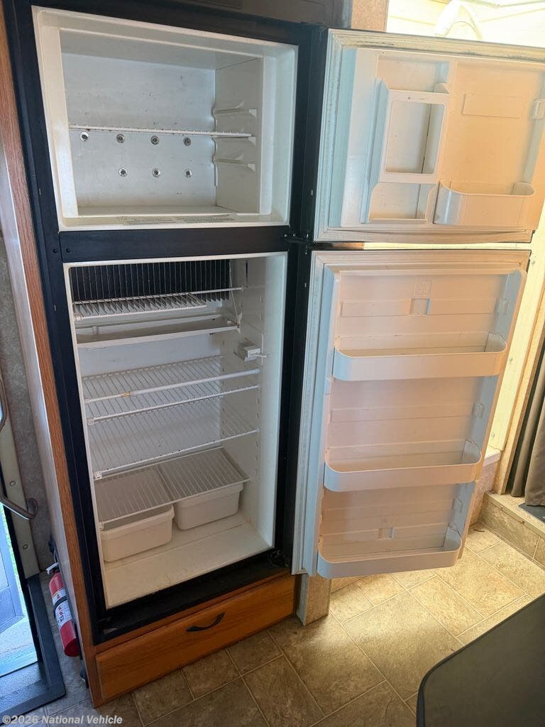 Inside, the coach offers a welcoming and functional layout with comfortable sleeping and living spaces, ideal for weekend getaways or extended road trips. The living area features two TVs for entertainment on the go, along with a CD/stereo system and cable-ready hookups.