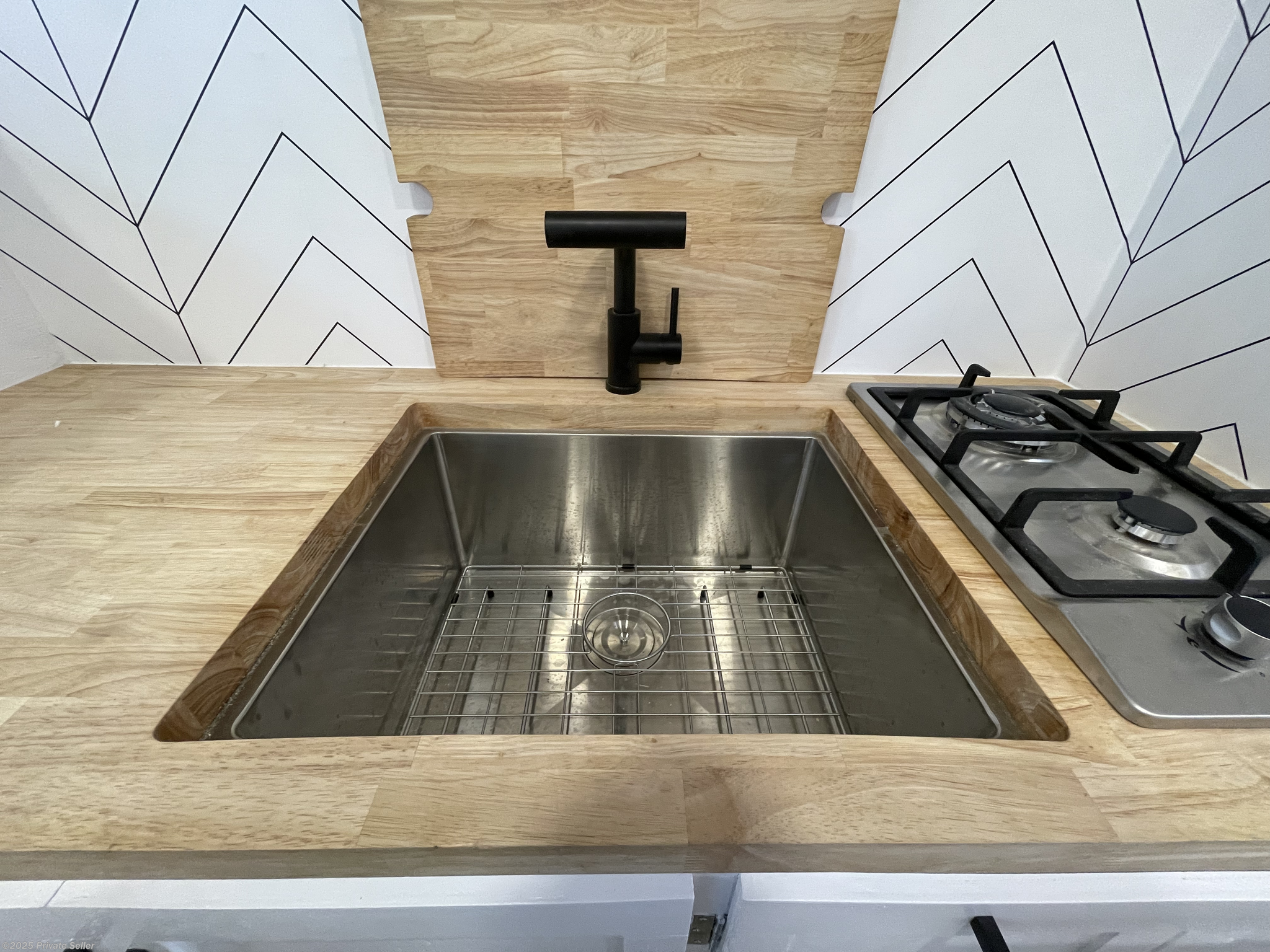Enclosed Water Tank, Exterior Freezer, Refrigerator, Refrigerator (12V), Stove Top Burner, Tankless Demand Gas Water Heater -