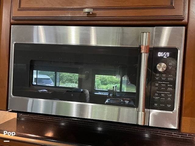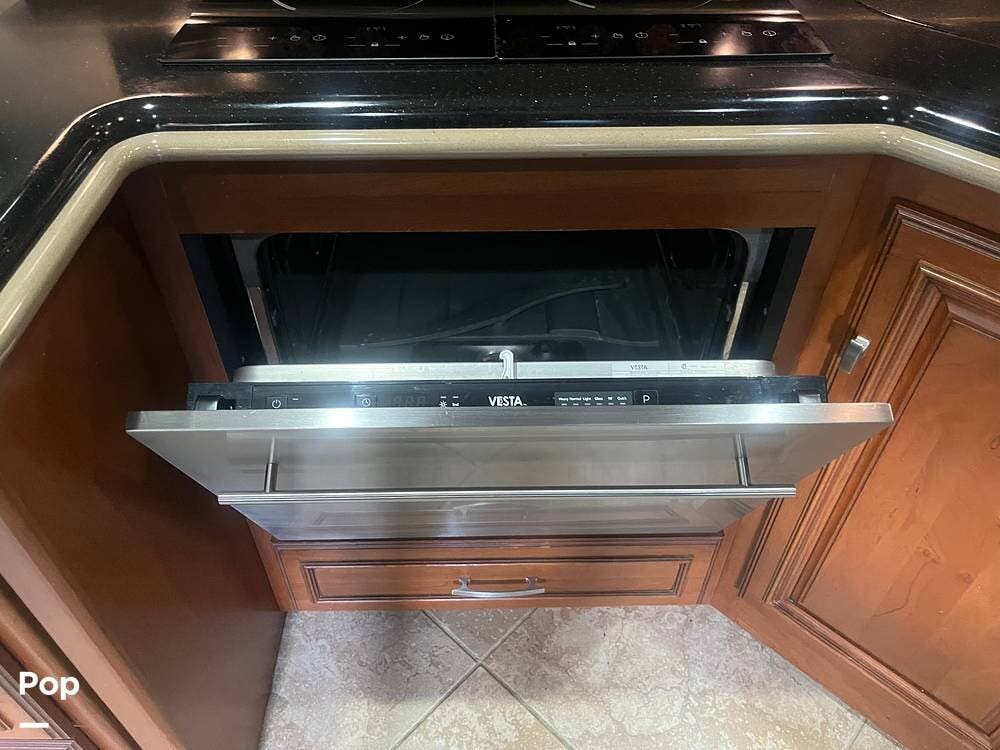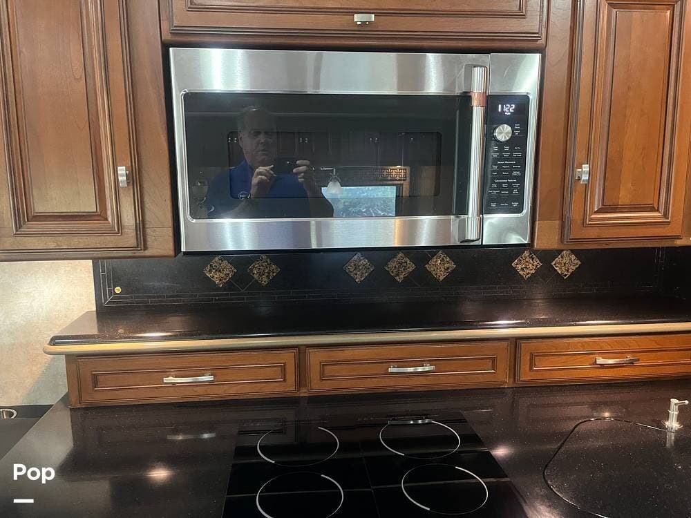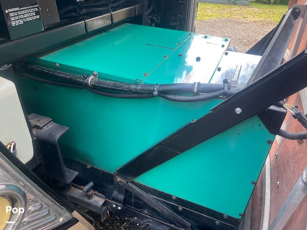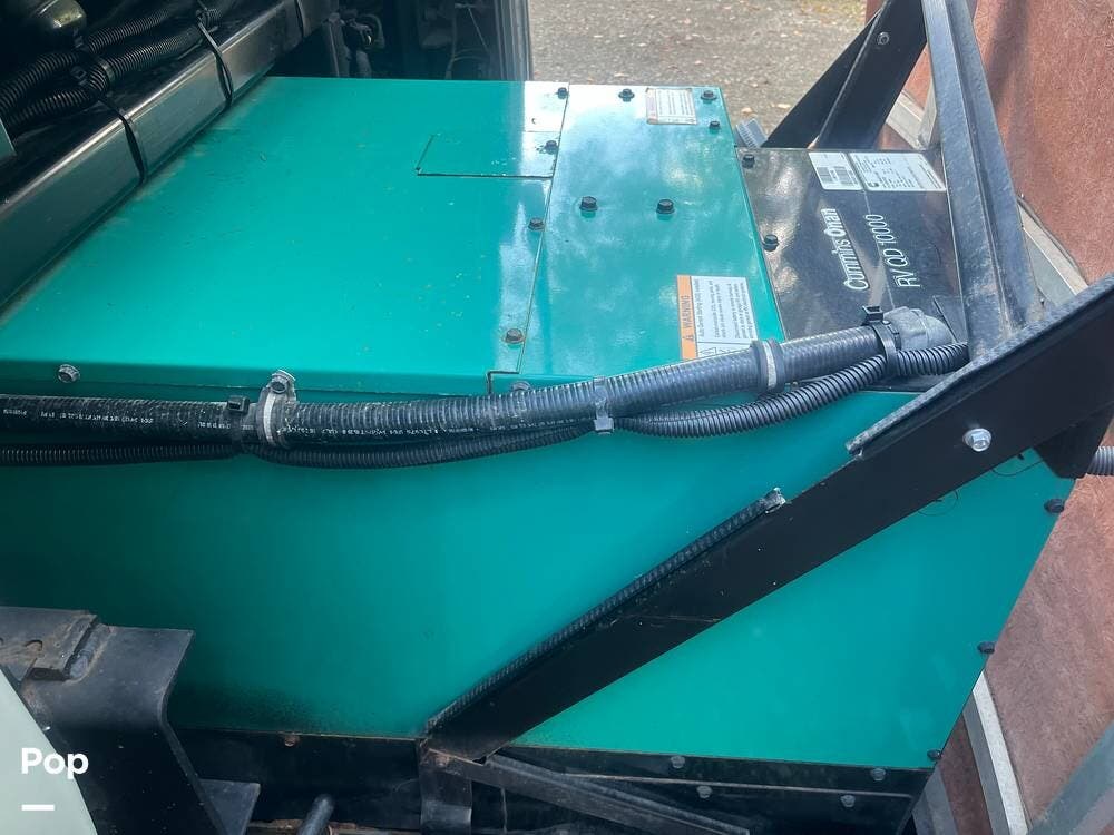 Cummins 450hp turbo diesel, Aqua Hot with on-demand continuous hot water and central heat, three 13,500 BTU low-profile roof air conditioners with two heat pumps and three condensation pumps, and a total electric appliance package, so no need for propane.