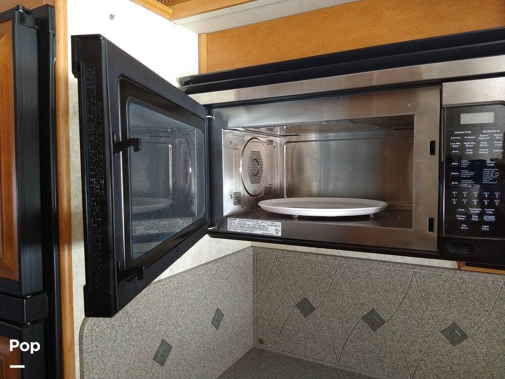 The fully equipped kitchen includes nice countertops, a convection microwave, a three-burner range, and a four-door refrigerator with an ice maker. There's also plenty of cabinets and pantry space to support extended trips. It has a nice layout for you to work in.