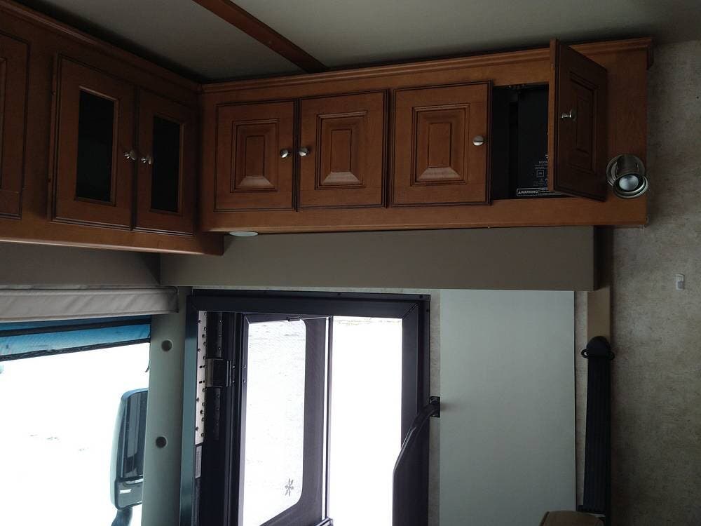 The cab features plush, power-adjustable captain's chairs that swivel to become part of the living space. A rear and side-view camera system, GPS navigation, and one-touch leveling make travel and setup a breeze. Large windows and power sunshades enhance your driving comfort and panoramic views.