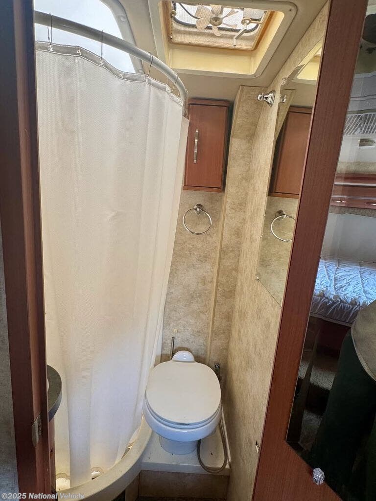 The full bathroom features a stand-up shower, vanity, and foot-flush toilet, while thoughtful storage throughout the coach ? including overhead cabinets and wardrobe space ? ensures you have room for all your essentials.