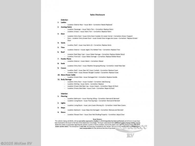This vehicle is being sold AS IS, with no warranties expressed or implied. An AS-IS inspection has been performed, and all known issues have been disclosed to the buyer to the best of the dealership’s knowledge. The buyer understands that additional repairs may be needed, and the dealership makes no guarantee regarding the vehicle’s current or future condition. Due to the repairs required, this vehicle is being offered at dealer auction values. This transaction is Cash Only. No financing is available for this vehicle. The customer is responsible for arranging their own transportation for the vehicle at the time of purchase.