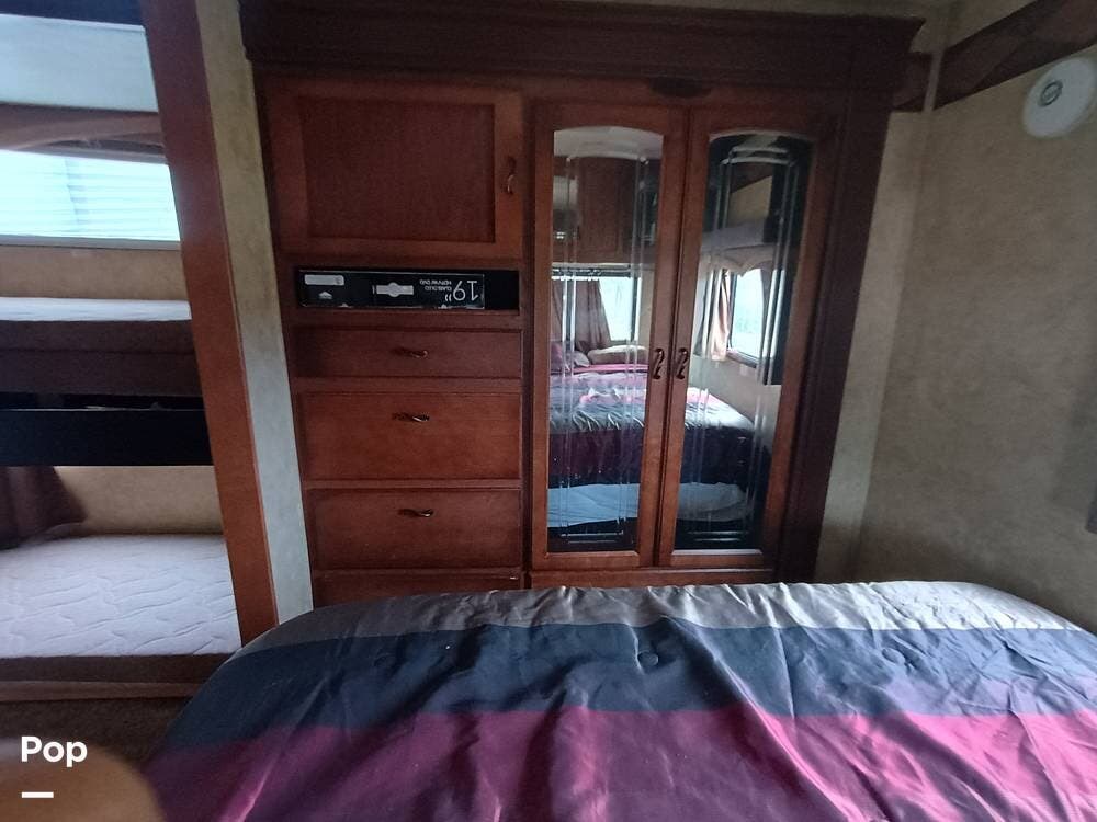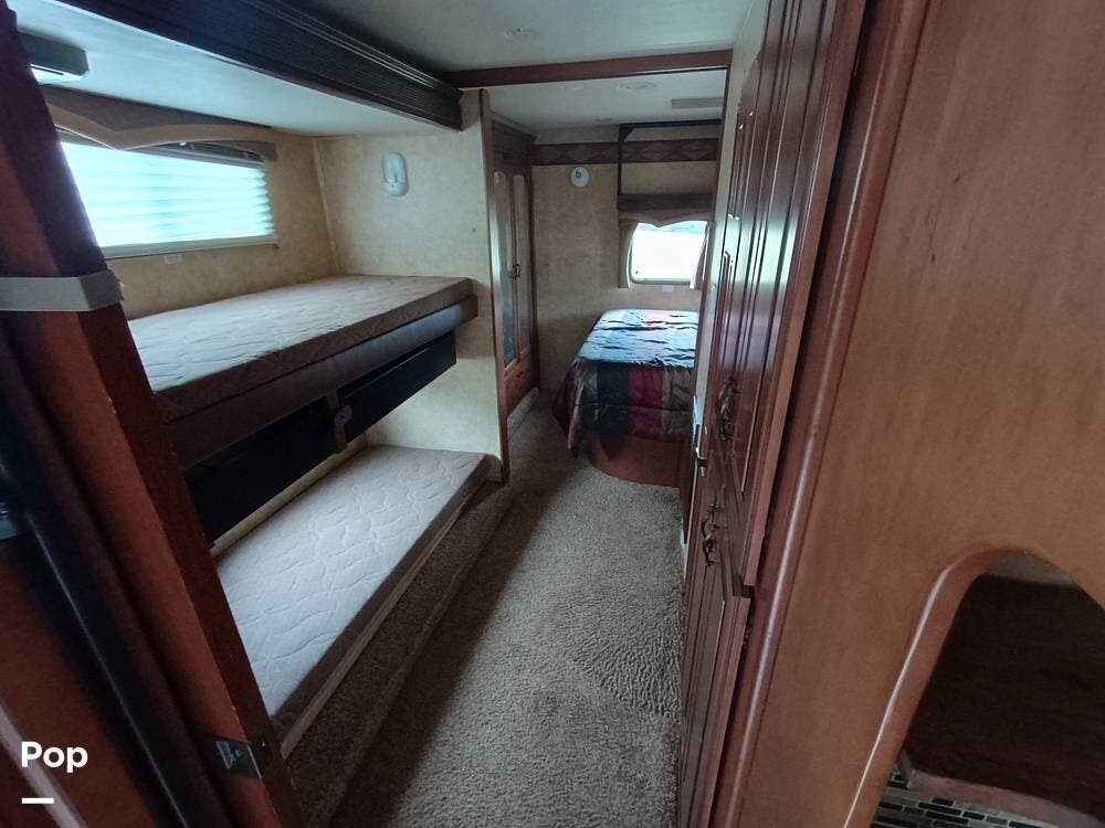 The family-friendly layout with a bunk area makes this RV perfect for accommodating up to 8 people. This layout includes a master bedroom and an overhead cab bunk.