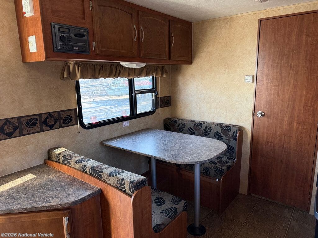 Inside, you?ll find a well-designed layout featuring a comfortable queen bed, convertible dinette, and additional sleeping space to accommodate family or guests. The functional kitchen is equipped with a cooktop, microwave, refrigerator, double sink, and plenty of cabinetry?everything you need for meals on the go.