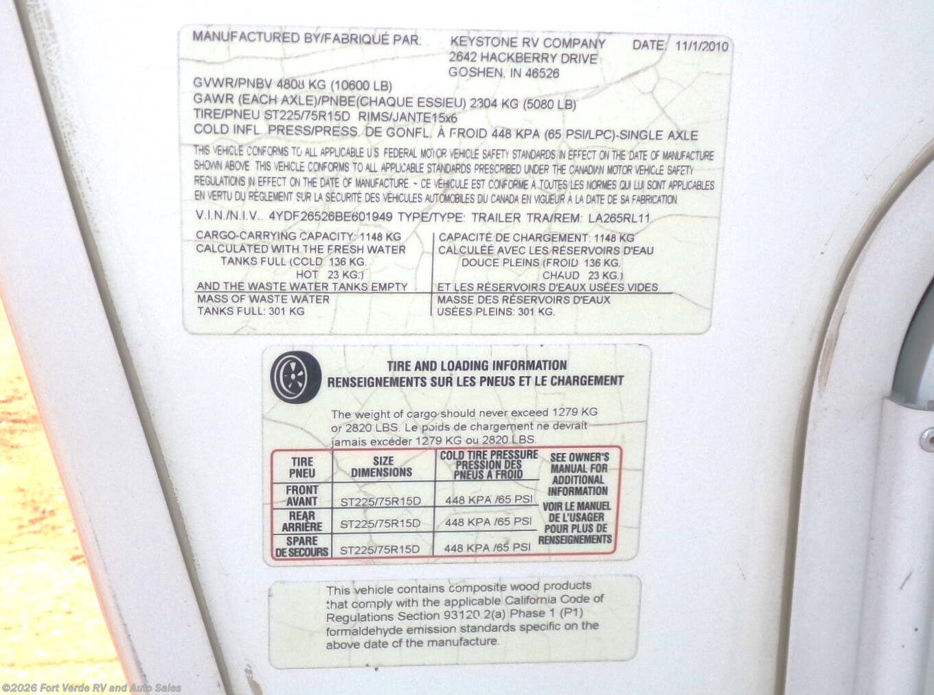 Request More Info on this 2011 Keystone 265RL Offered for sale by Fort Verde RV and Auto Sales