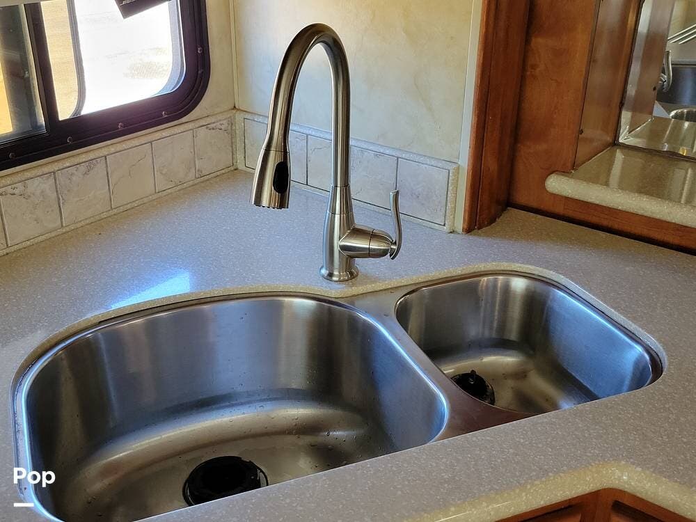 This 43-footer is well laid out, roomy, and perfect for all your adventures, no matter how long or short they may be. The powerful and dependable Cummins ISL 8.9L with Allison 6-speed transmission packs 425 HP, 1200 ft-lbs of torque, and a towing capacity of 10,000 lbs.