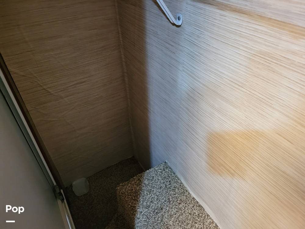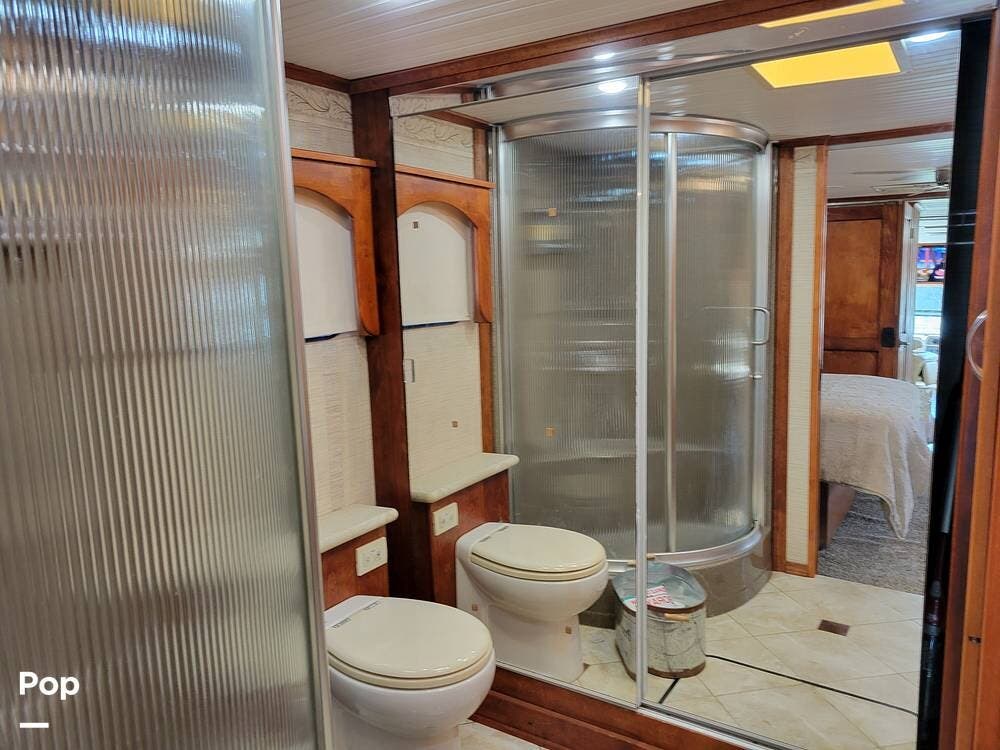 Next is the bedroom suite, which is roomy yet cozy. It has a TV, a dresser, nightstands, a queen bed, and plenty of storage. At the rear of the couch, you will find a master bath with a large, roomy shower, vanity, closet, washer/dryer, and large wardrobe.