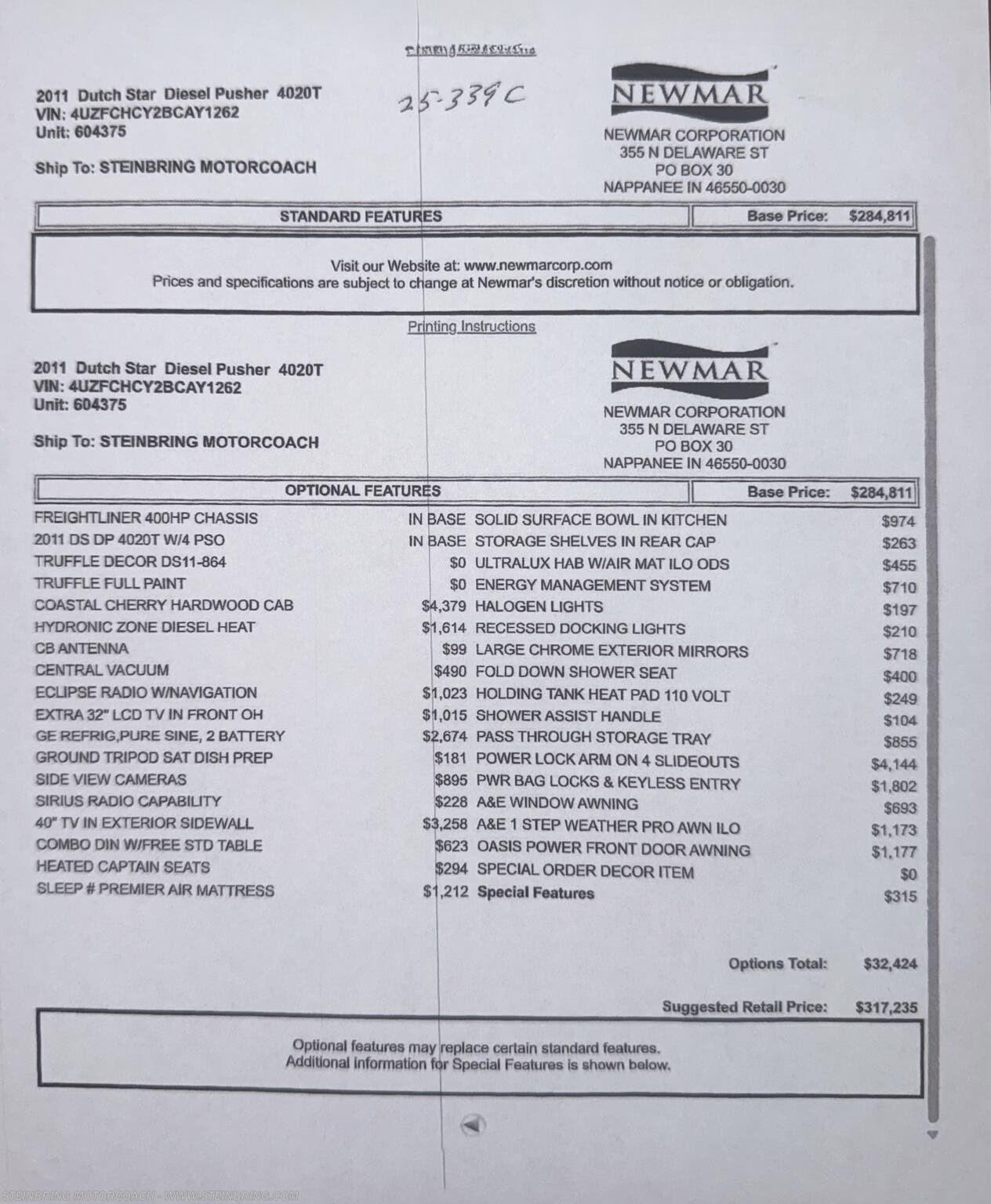 Request More Info on this 2011 Newmar Dutch Star 4020T Offered for sale by Steinbring Motorcoach