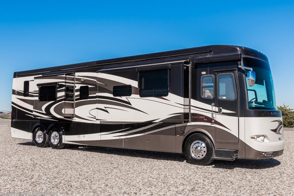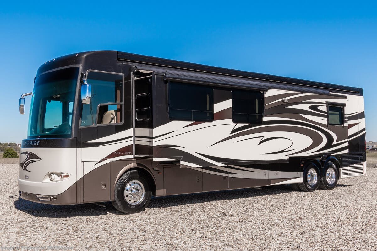 Used Newmar RV for sale – 2011 Newmar King Aire 4574 is approximately 45’ 0” in length with 61,848 Miles, 3 slides and features HWH & Air leveling system, Aluminum wheels, full body paint, 4 camera system, diesel generator, Cummins 605HP diesel engine, Spartan Chassis, Tilt/telescoping steering wheel, smart wheel, secondary engine brake, power visor, keyless entry, power windows, hydro-hot, patio awning, door awning, window awning, cargo tray, pass through storage, docking lights, black tank flush, power water hose reel, power electrical reel, exterior shower, exterior TV, fiberglass roof, air ride, inverter, ceramic tile, leather seating, stackable washer/dryer, heated floors, 7 foot ceiling, dual pane windows, hardwood cabinets, dishwasher, convection microwave, residential refrigerator with ice maker, king bed, theater seats and much more. For additional details on this unit and our entire inventory including brochures, window sticker, videos, photos, reviews & testimonials as well as additional information about Motor Home Specialist and our manufacturers please visit us at or call 800-335-6054 for our Texas location or 334-288-0331 for our Alabama location. At Motor Home Specialist, we DO NOT charge any prep or orientation fees like you will find at other dealerships. Read Thousands upon Thousands of 5-Star Reviews at and See What They Had to Say About Their Experience at Motor Home Specialist.