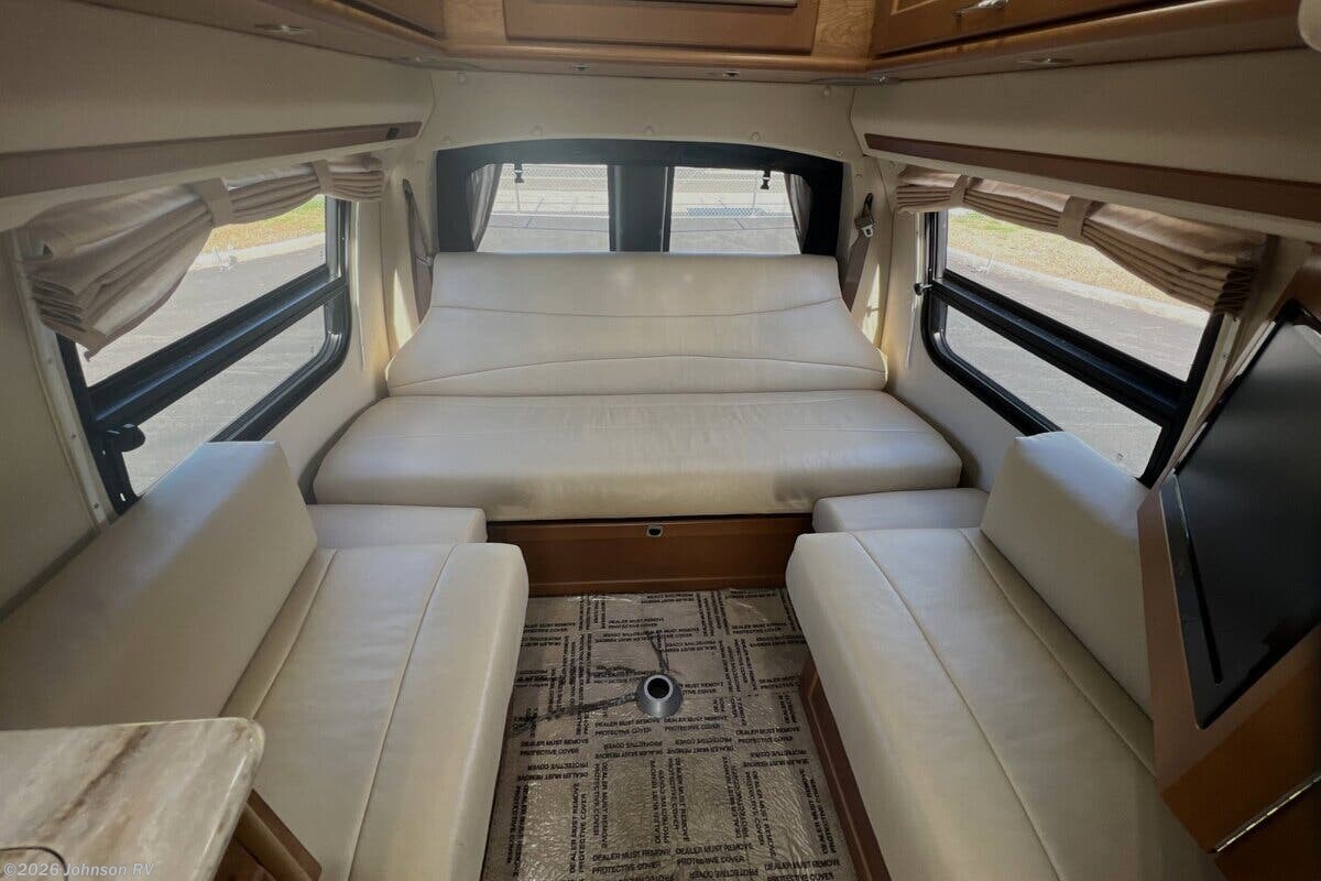 Features Include: 155-inch Wheel Base, 6.0L V8 Gas Engine, 35-Gal Fuel Tank, 3:42 Rear Axle Ratio, Remote Keyless Entry, Power Side-Mirrors, Chassis AC and Heat, Swivel Cab Seats, Fiamma Patio Awning, LED Lighting, Ultraleather Fabric, Power Rear Sofa, Removable Table, Corian Countertops, Stainless Steel Sink, Systems Center, Memory Foam Cushions, 10-Gal LP Tank, Generator Prep, 16k Furnace, 6-Gal Hot Water, Water Heater Bypass