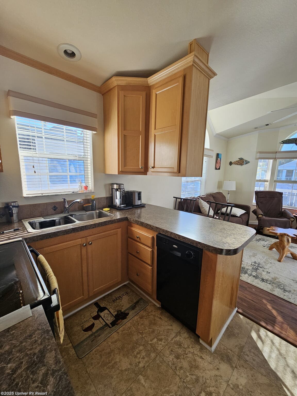 Kitchen has taller cabinets for additional storage, microwave over stove, and dishwasher. Leaving a well stocked kitchen with plates, glasses, knives, cutlery, pots, pans, mixing bowls,