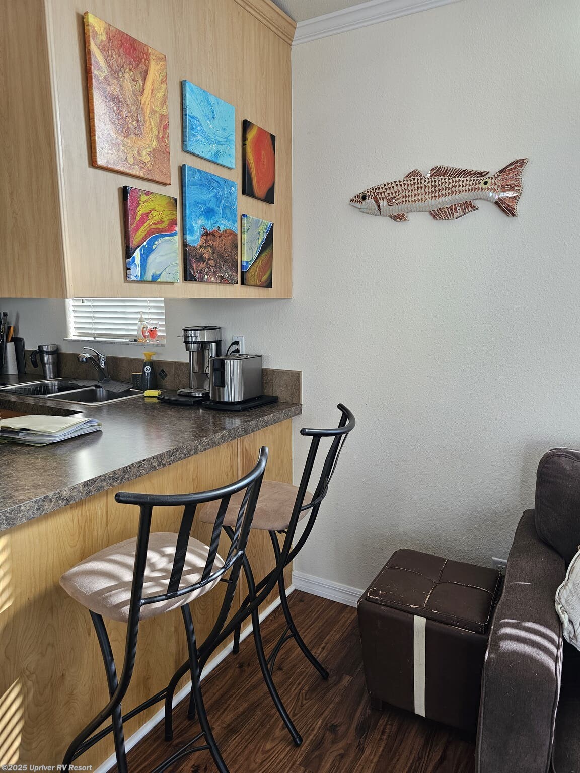 Vinyl plank floors in bedroom and living area. Vinyl tiles in kitchen and bathroom. New ducts installed,