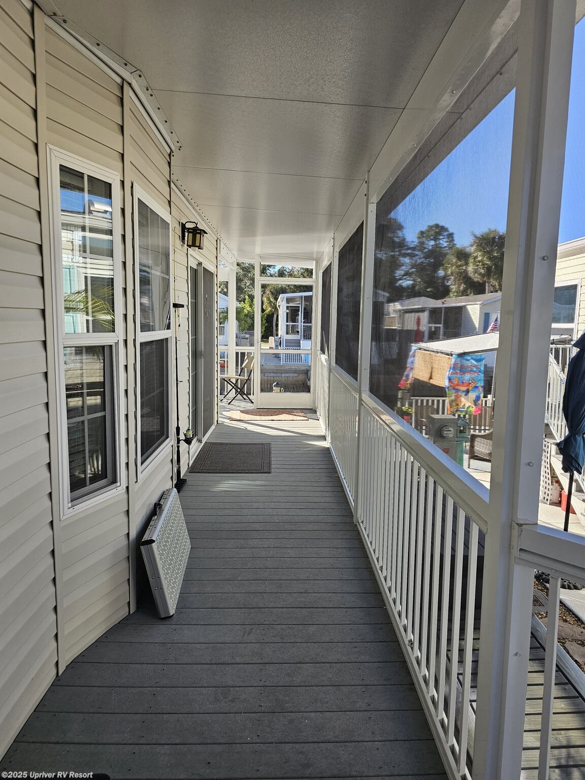 AC recently cleaned and inspected. Unit has a screened side and front deck. Storage available under unit with two access doors.