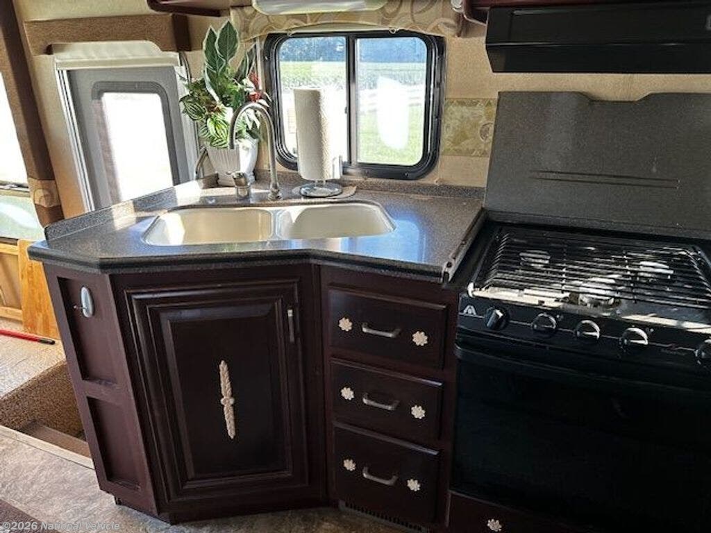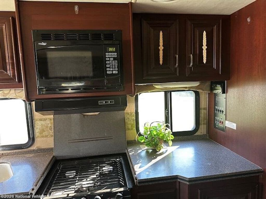 Step inside and take a look back at all of the convenient features that would make any journey enjoyable. The kitchen area features everything you need to prepare great meals on the go including a sink, a three burner range with microwave/convection oven, and a refrigerator/freezer. There is also plenty of storage for all of your dry and canned goods. Have a seat at the comfortable dinette, where you can enjoy meals with your family.