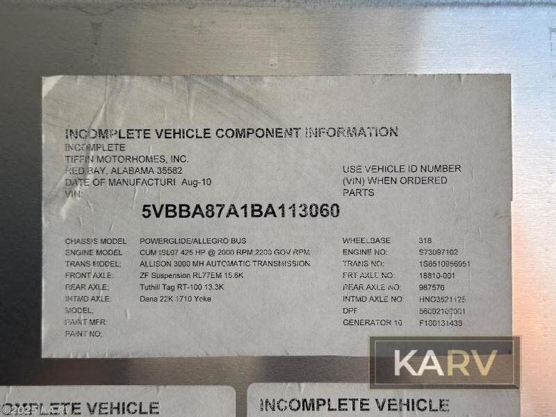 Request More Info on this 2011 Tiffin Allegro Bus 43 QGP Offered for sale by KA RV