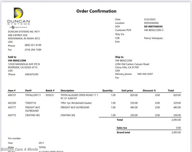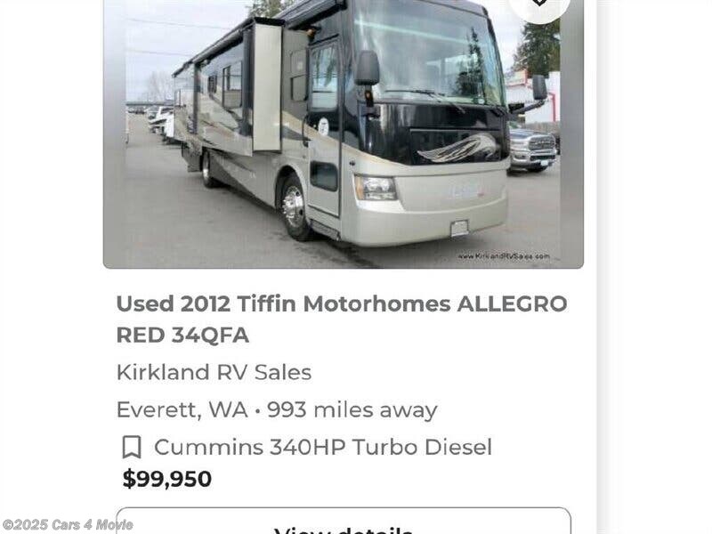 Why Tiffin? Because quality isn’t just a slogan — it’s a standard. Tiffin Motorhomes handcraft many of their own components in-house, including the windows, cabinetry, fiberglass, millwork, and even some chassis elements, ensuring exceptional build quality and long-term parts support. The Tiffin Allegro is known for its luxury, practical design, and premium construction, featuring up to four slide-outs, advanced full-body paint, protective front cap film, and beautifully finished interiors built for comfort and durability. Every inch of this coach reflects Tiffin’s legendary craftsmanship and efficient use of space, making it one of the most respected motorhomes on the road today — and a truly unbeatable deal at this price point We’re a small family-run business proudly selling RVs, motorhomes, specialty vehicles nationwide since 2010, backed by 100% positive eBay feedback and 1000s of satisfied buyers. Each unit goes through a 50-point inspection for quality, reliability, and safety. Over 95% of our customers purchase sight-unseen with complete confidence thanks to our simple, secure, and fully transparent process: FREE nationwide shipping backed by 30-day limited warranty, and a Bill of Lading to help out-of-state buyers exempt from the 10% California pickup tax. Local pickups are welcome by appointment only and require a small refundable deposit so we can schedule prep and documentation. For buyers purchasing sight-unseen, we proudly offer FaceTime or live-video, giving you a real-time walk-through to verify "NO SCAM" & the vehicle’s authenticity + condition before completing your purchase. Our family has been shipping RVs & specialty vehicles coast-to-coast for over 14 years with a reputation built on trust, transparency, and hassle-free delivery.... Opportunity of a Lifetime! Here’s your chance to own a $104,000 Tiffin Allegro Diesel Pusher Bus for a fraction of the price, discounted only because of some minor past cosmetic damage — with FREE door-to-door nationwide shipping and a 30-day limited warranty included. This is a beautiful, low-mileage luxury coach that runs and drives perfectly, powered by the 6.7L Cummins Turbo Diesel (670 lb-ft of torque). It previously had hail damage on roof, causing light exterior damage — no mechanical issues, no flood, no fire. The interior remains in excellent condition, fully functional, and ready for travel. Comparable units retail for well over $100K, RV industry gaining popularity, RVing has become a lifestyle for many. Approximately 9 million families own RVs for recreation, and over a million families live in their RVs full-time. RVing it's an affordable way to travel the country. who wish to work on the road, today's vast cellular wifi nationwide makes it possible.