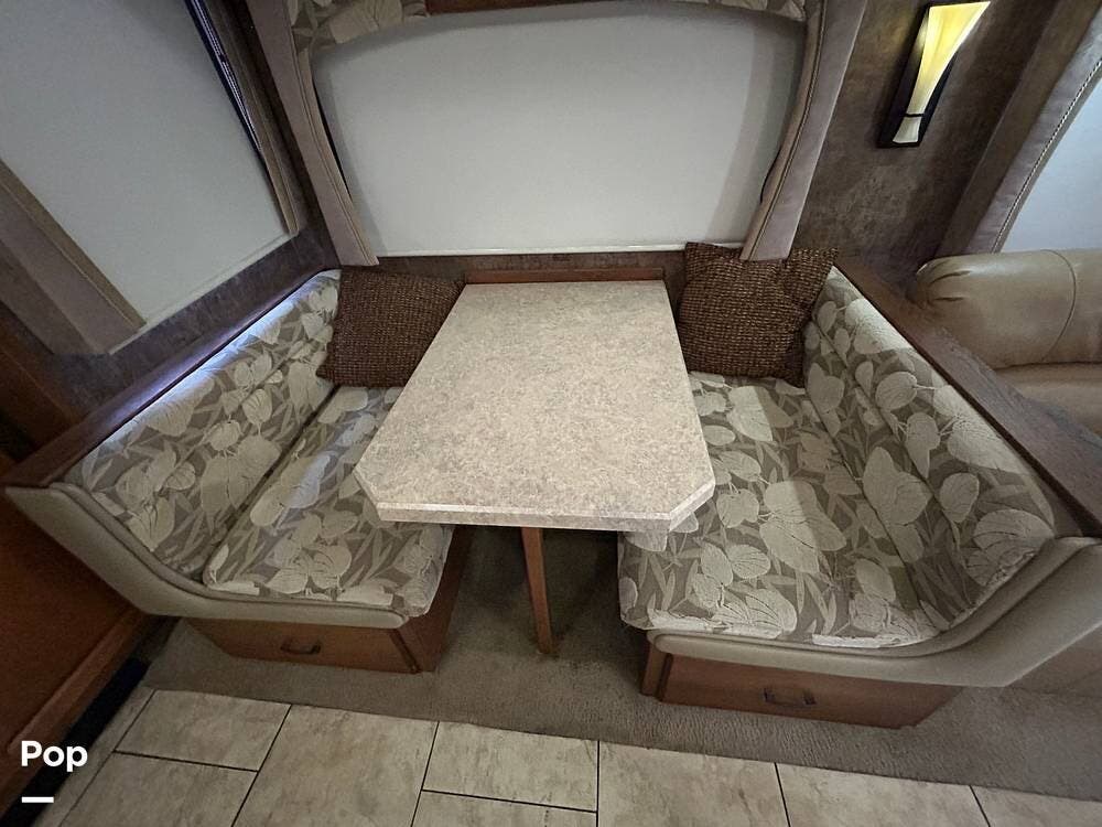 Versatile Living Area with booth dinette and sofa bed slide-out, plus a lounge chair and 37-inch LCD TV, creating a cozy entertainment zone that converts for additional sleeping.