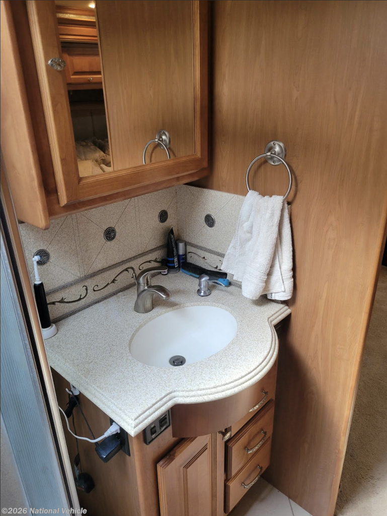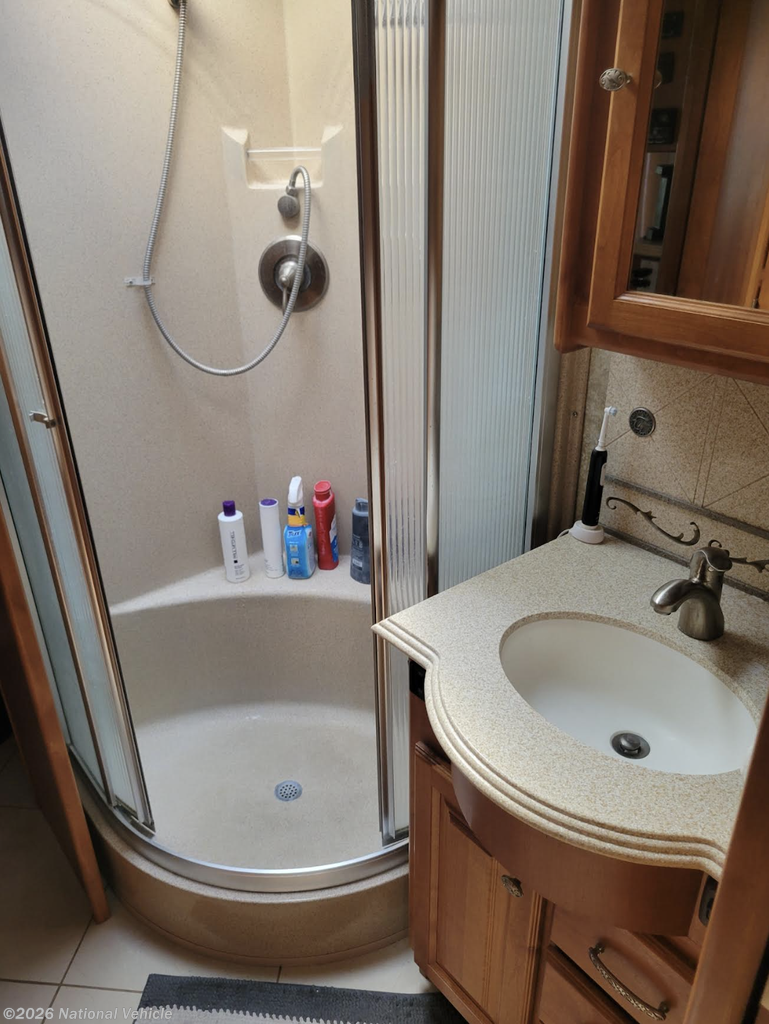 Power is never an issue with the onboard 8.0 kW Onan diesel generator and 170-amp alternator, making this rig fully capable for dry camping or full hookups. The coach is equipped with automatic hydraulic leveling jacks for easy setup at any campsite.