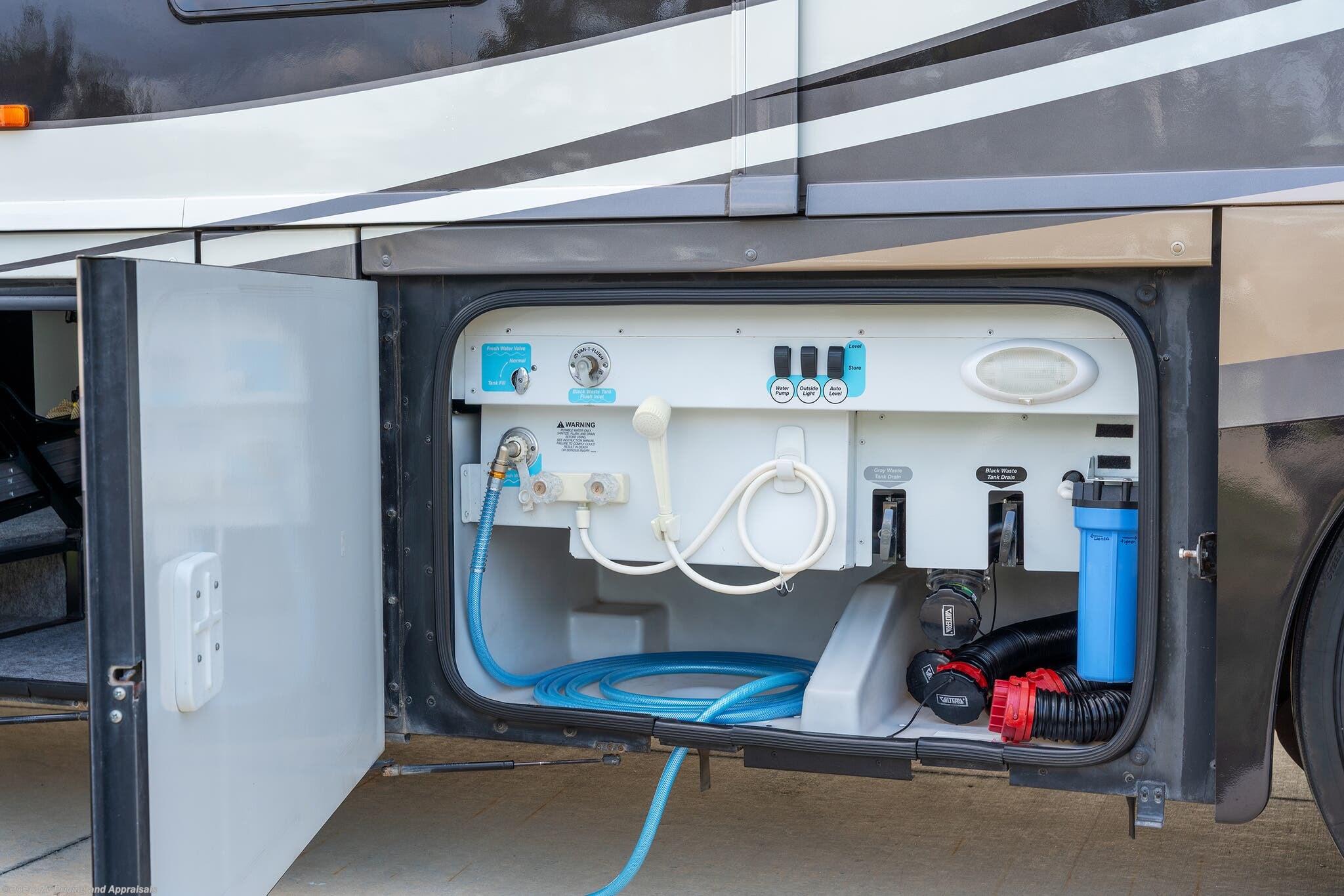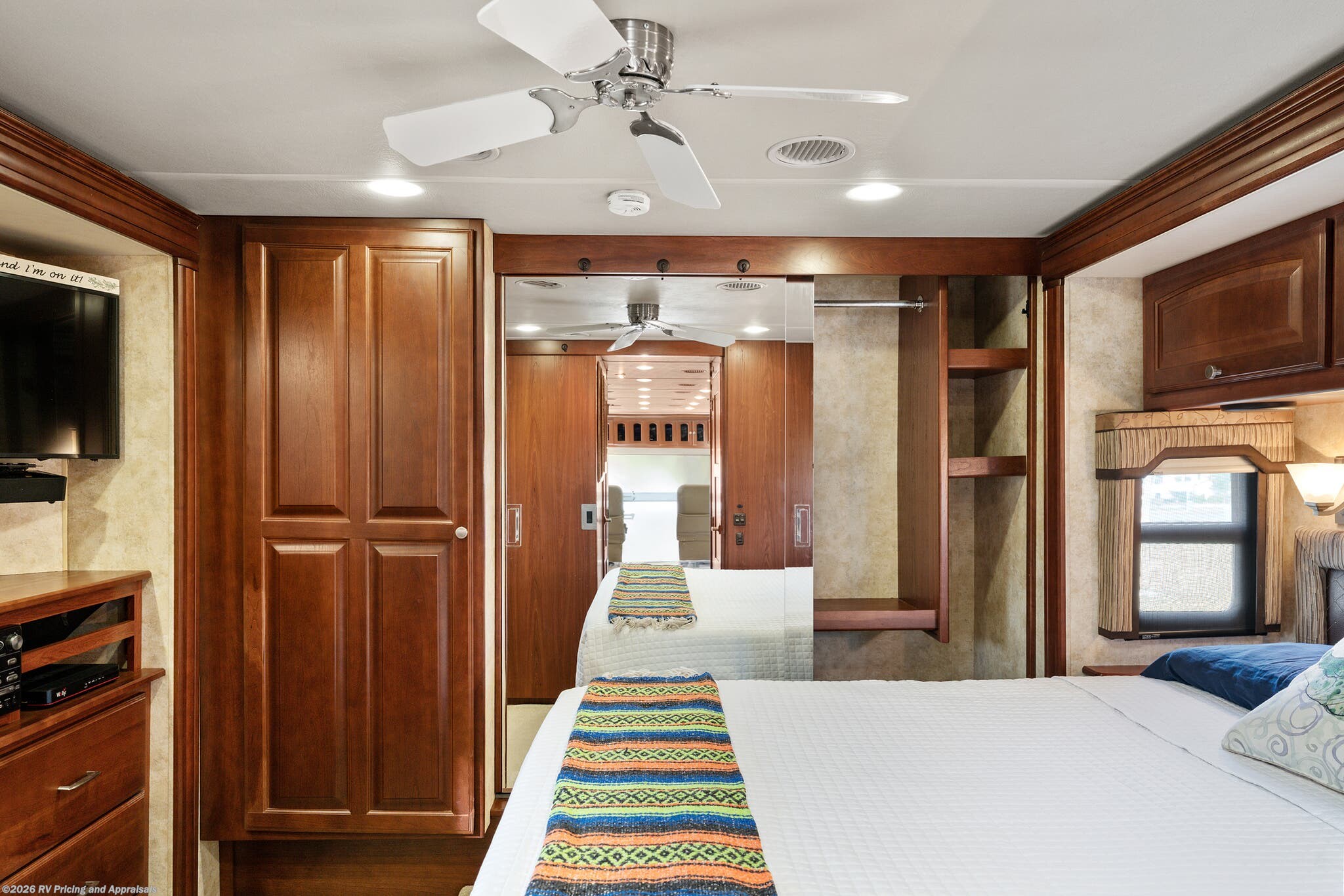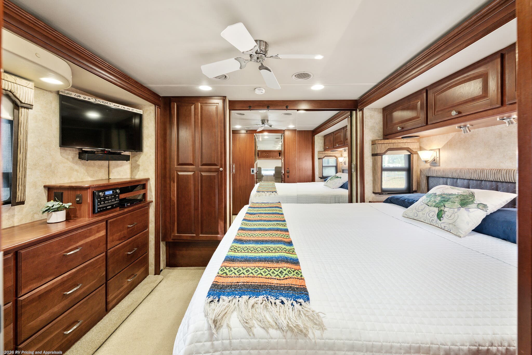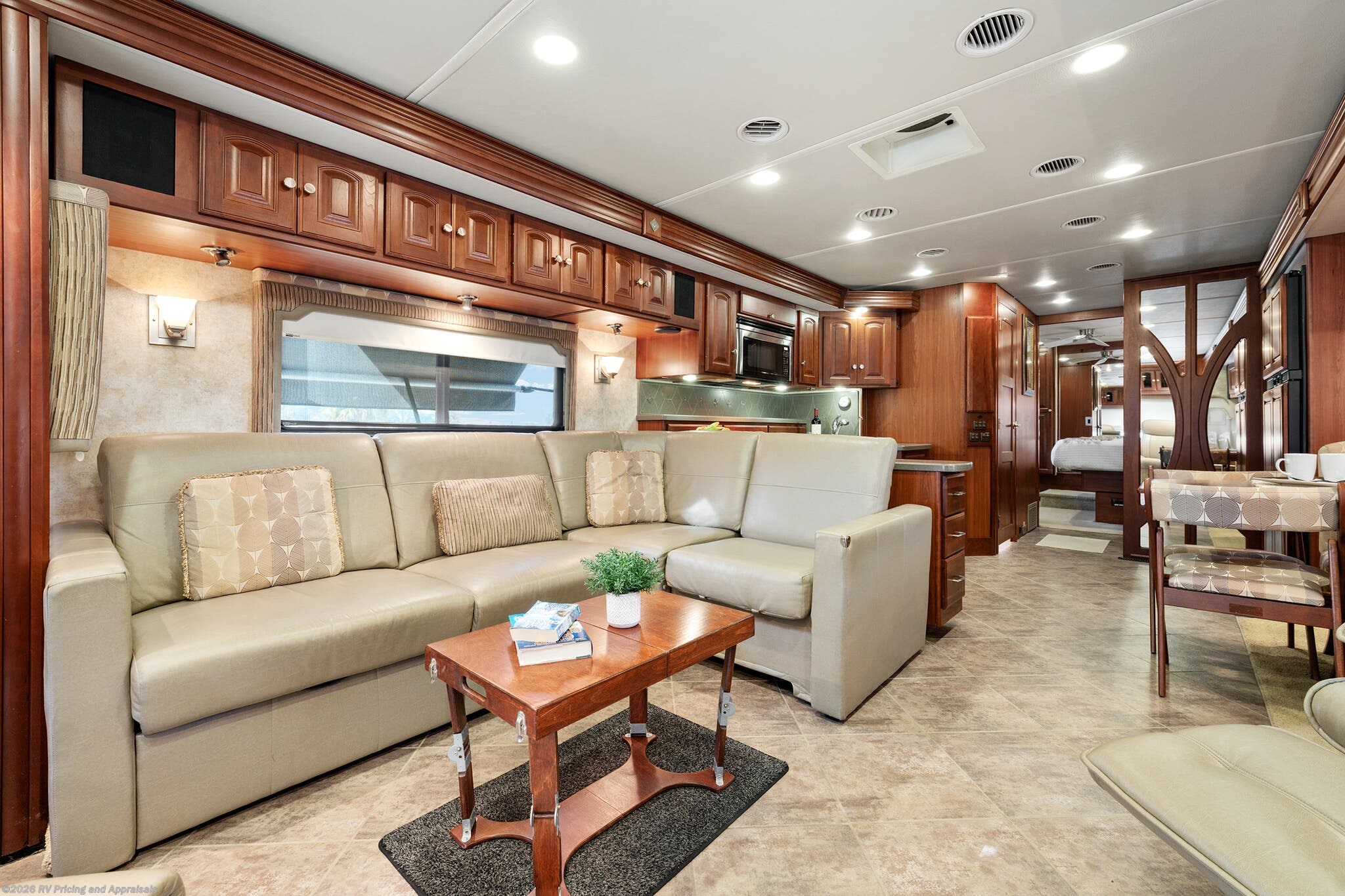 •Entertainment: Exterior TV/DVD/radio combo plus two interior upgraded 4K Smart TVs with Blu-Ray and home theater surround sound for cinematic experiences. Satellite radio capable.