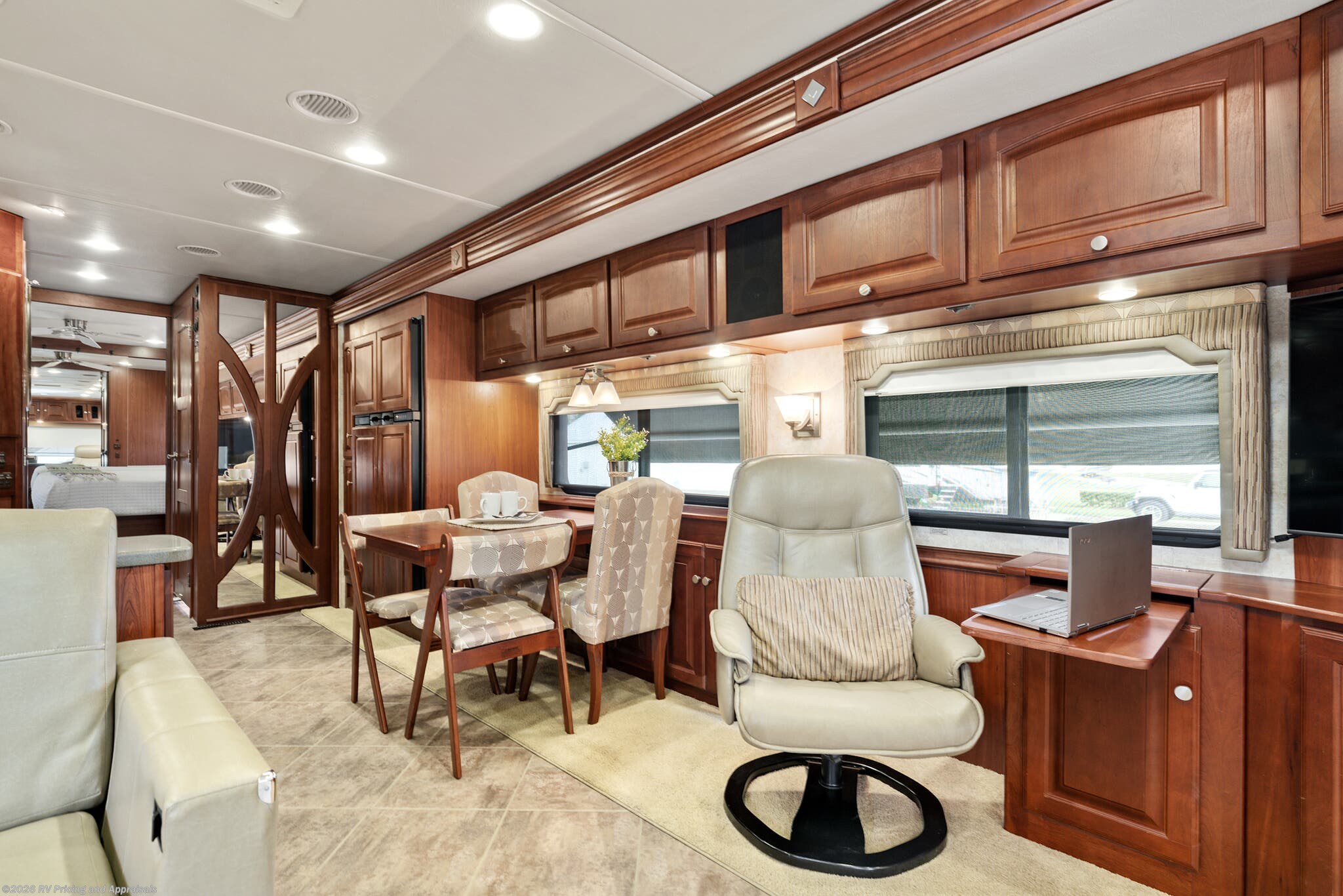•Expandable dinette with four chairs/Seperate pull-out computer desk with Euro Ultraleather chair.