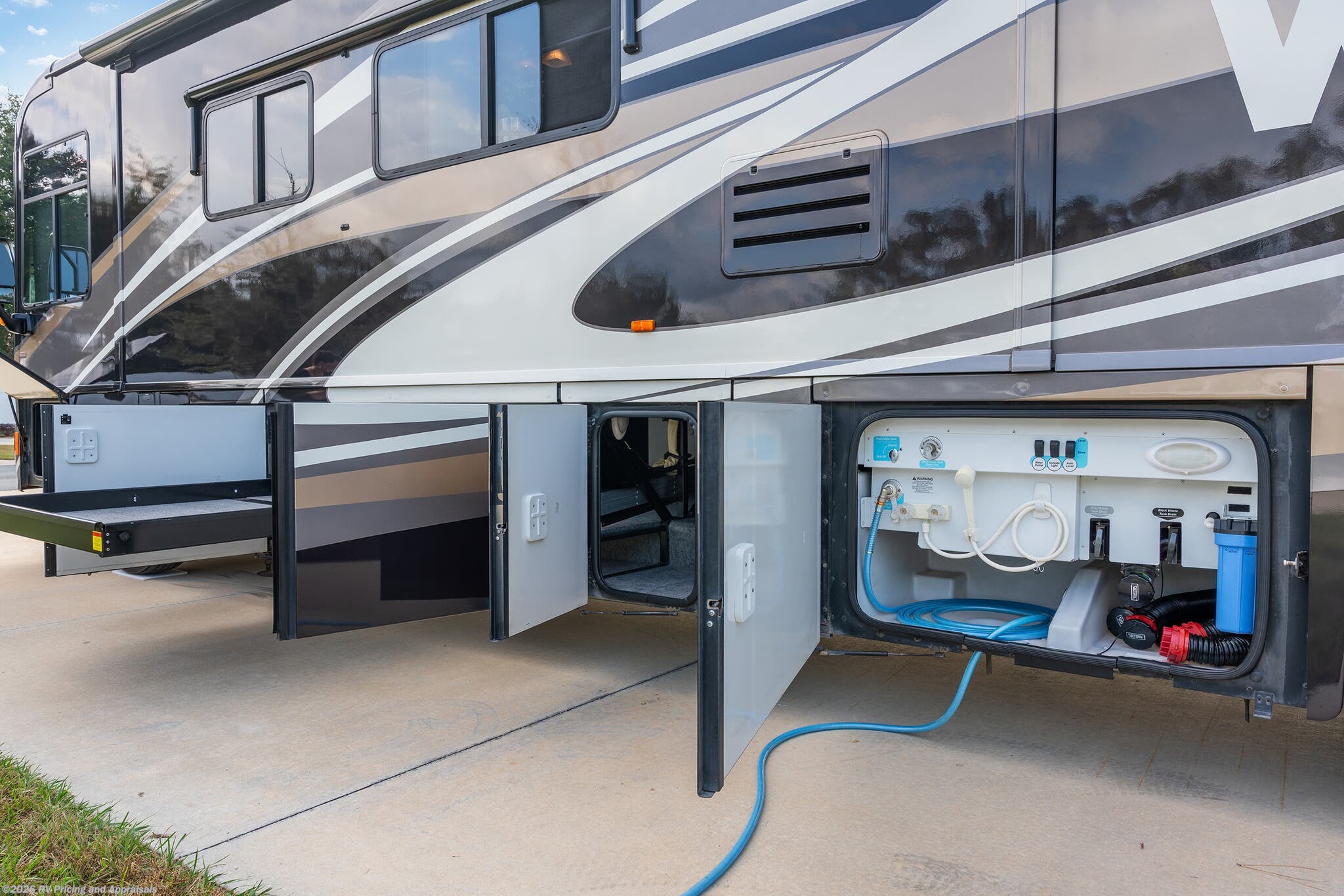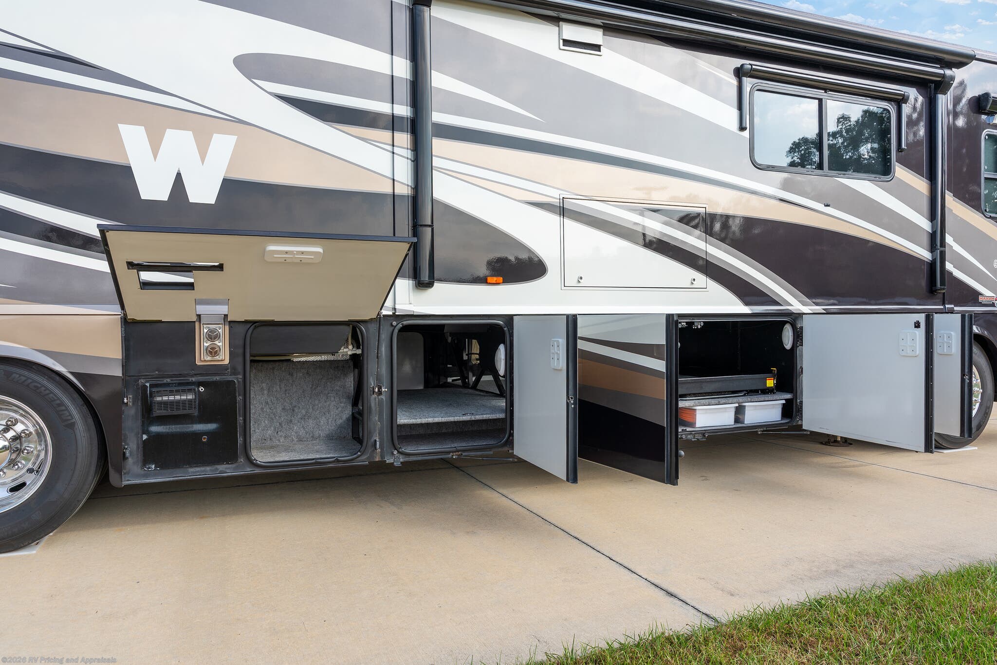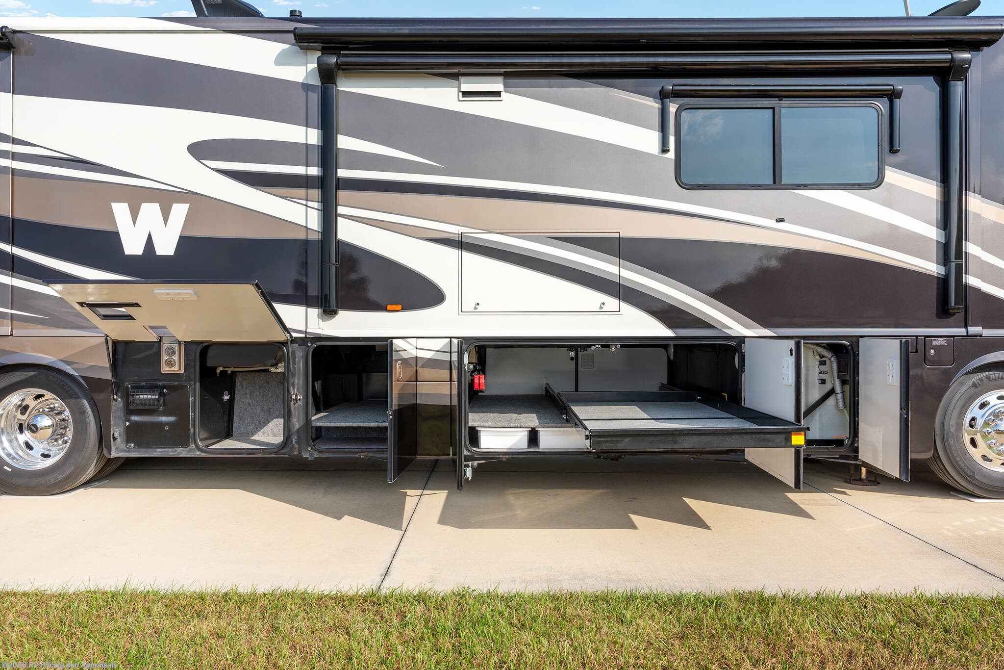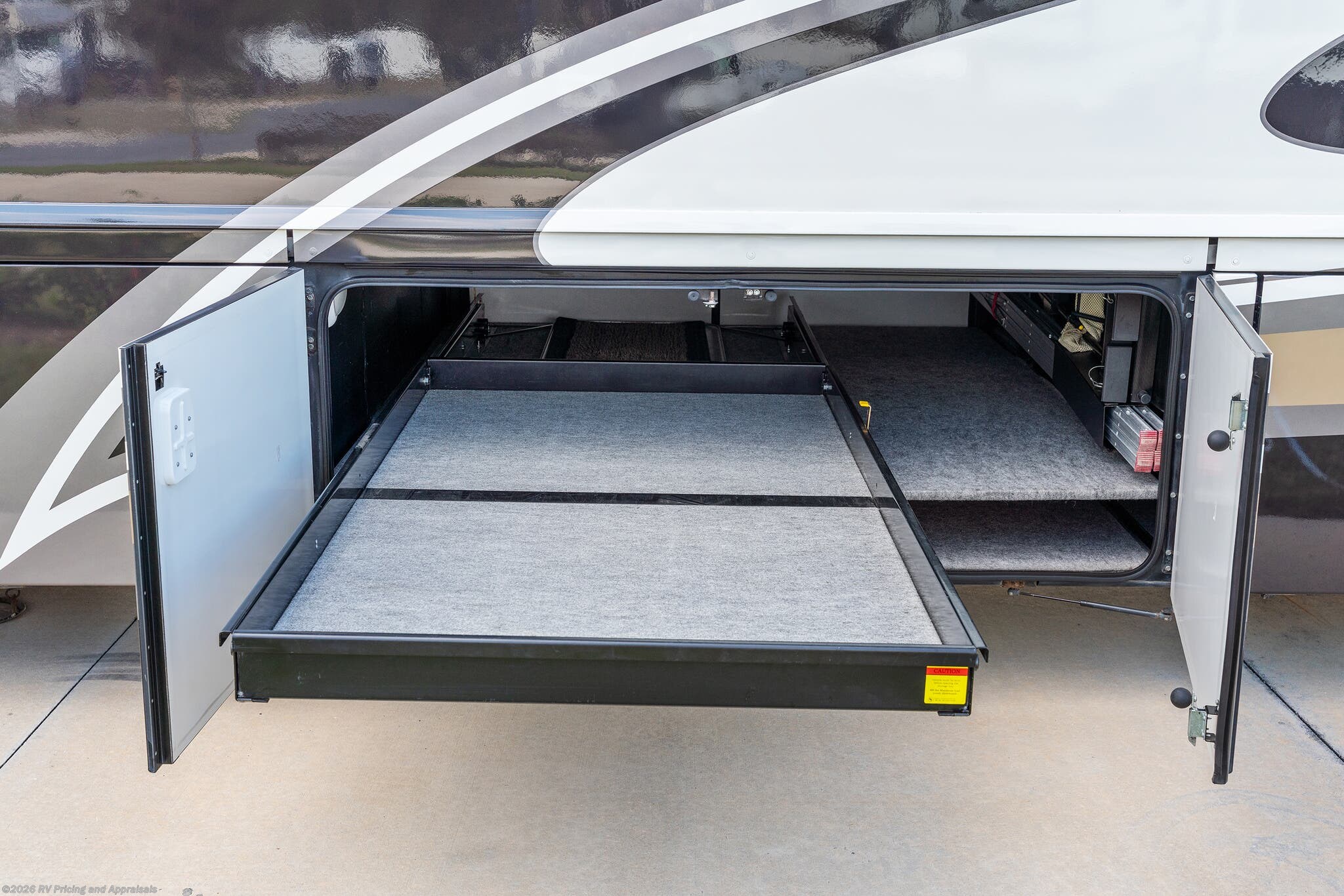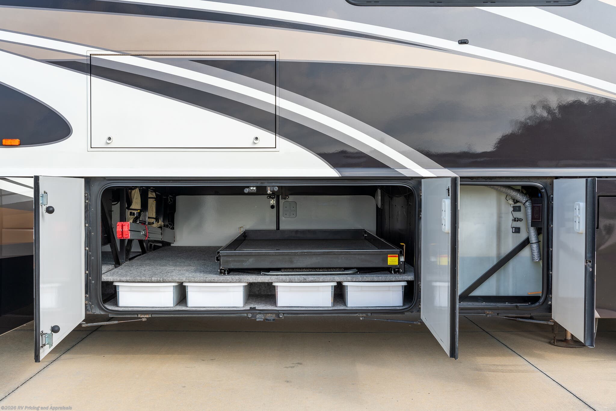 • Huge basement pass-through storage area with large sliding tray that extends to either side for all your outdoor recreational gear.