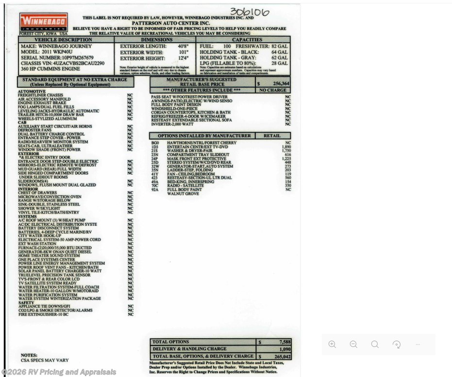 2011 Winnebago Journey 40 U- LOCATED IN HOBE SOUND, FLORIDA, 33455 Literature