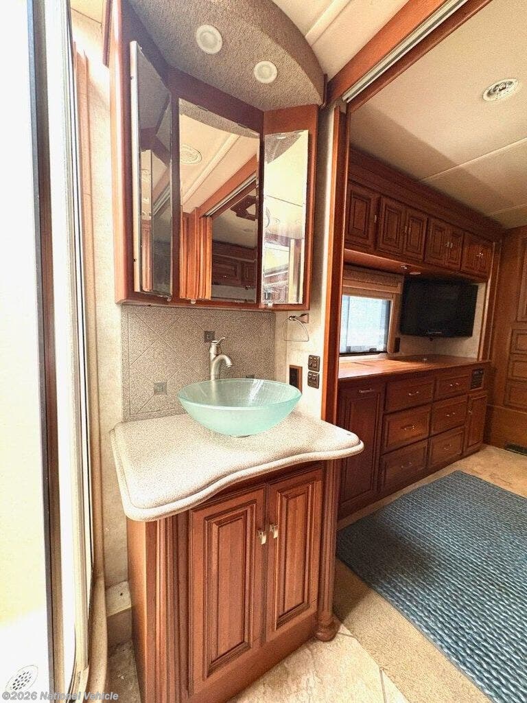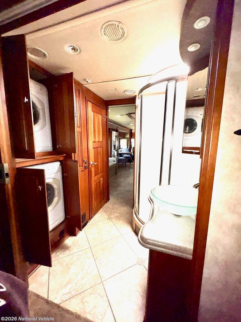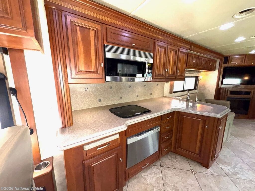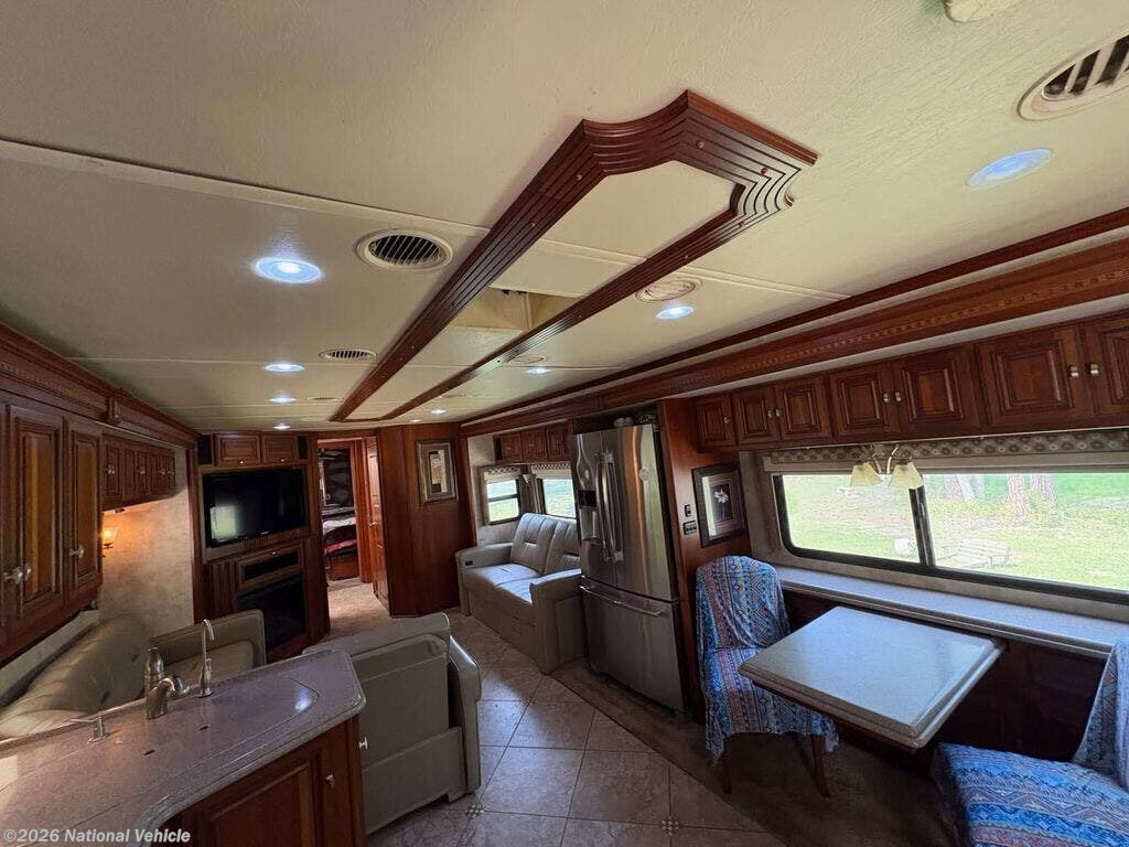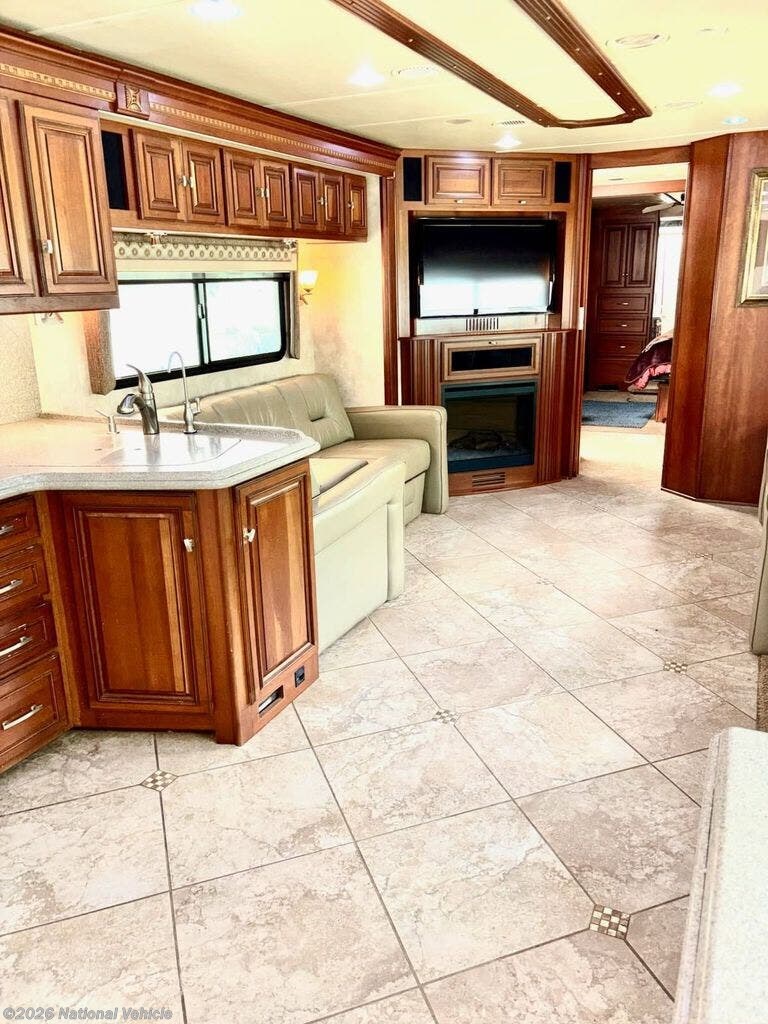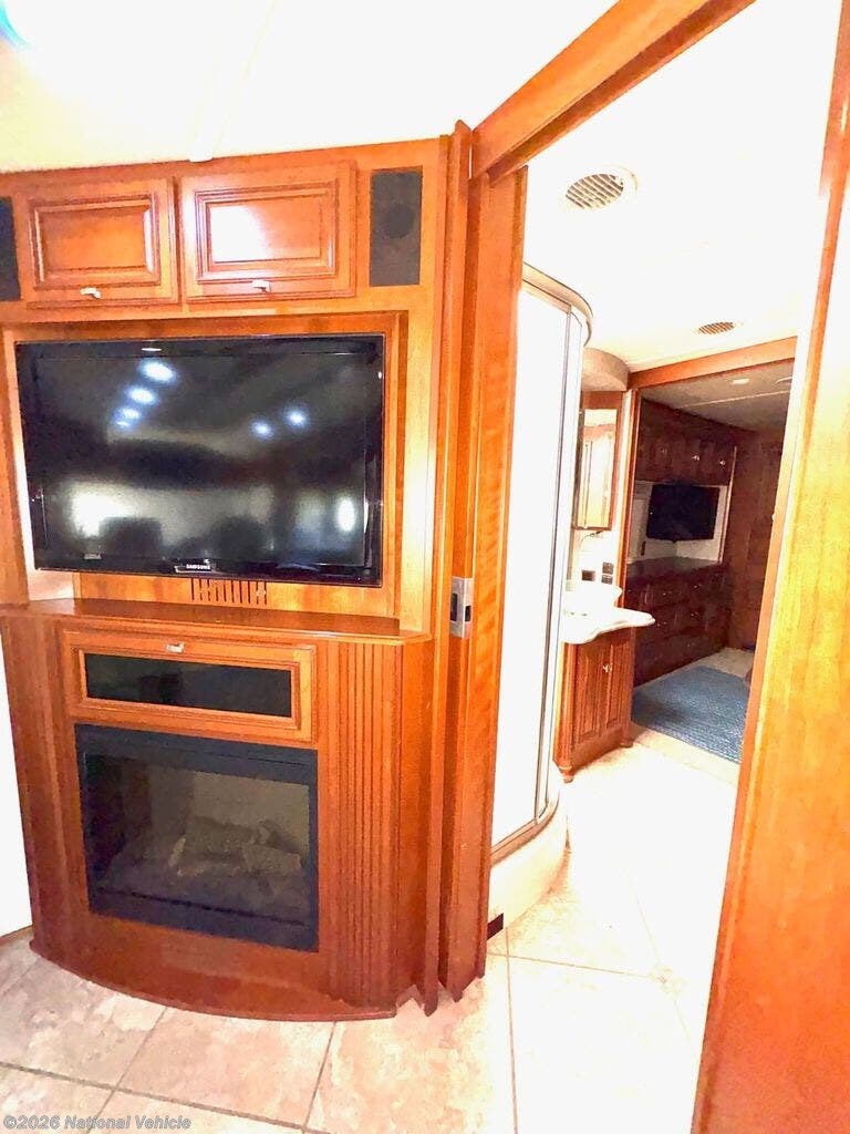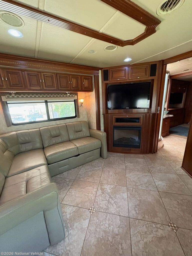 The 2011 Winnebago Tour 42QD is a top-of-the-line luxury diesel pusher that delivers exceptional power, premium craftsmanship, and true residential comfort in an expansive 42' 11" quad-slide floorplan. Built on the robust Freightliner Maxum chassis and powered by a Cummins ISL 8.9L turbo diesel engine, this coach offers impressive horsepower, a smooth ride, and confident handling-perfect for long-distance travel or full-time living. Inside, four slide-outs create a wide-open living space filled with high-end finishes, polished tile flooring, solid hardwood cabinetry, and designer furnishings that give the coach a true residential feel. The main living area features plush seating, a free-standing dinette, and an entertainment center with fireplace, making it ideal for relaxing or entertaining. The kitchen is equally impressive with solid-surface countertops, a residential refrigerator, 3-burner cooktop, convection microwave, dishwasher, and abundant cabinetry, offering everything needed for real-world cooking. Toward the rear, the master suite provides a private retreat with a king bed, large wardrobe, washer/dryer, and generous storage, while the bath-and-a-half layout adds convenience with a mid-coach half bath and a spacious rear bathroom featuring a large glass-enclosed shower and dual sinks.
