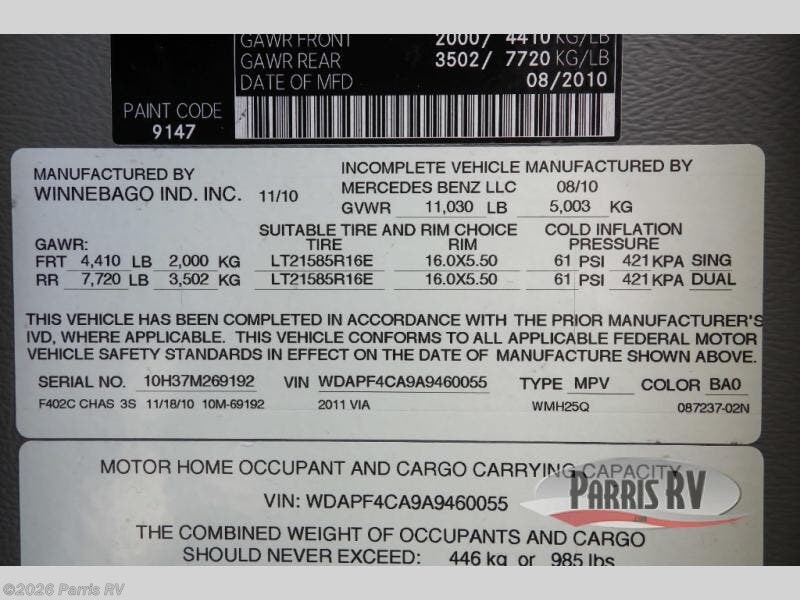 Looking to buy a 2011 Winnebago Via Class A RV?