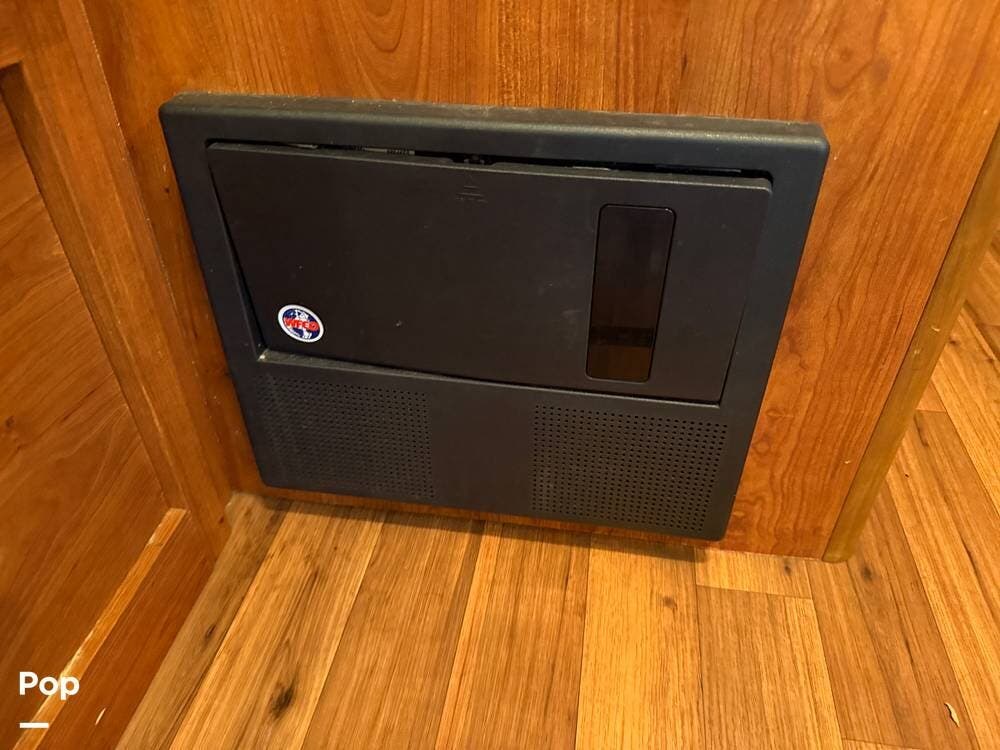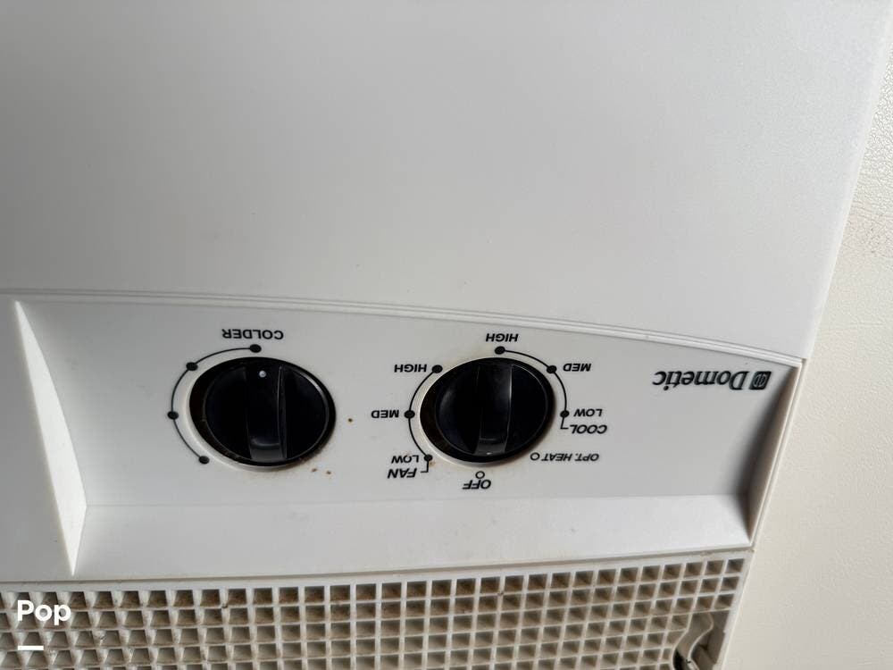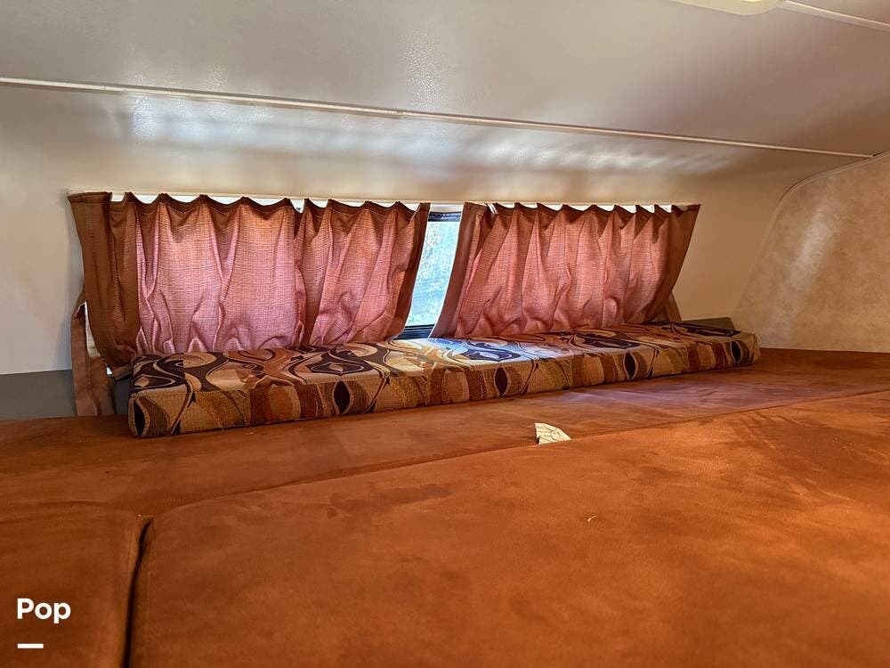 There is no lost space within the interior with storage. The cab over the bed has good headroom. The settee comfortably seats passengers with seat belts when underway and converts to a bed when bedding down at camp. The large full-sized bed has a privacy curtain.