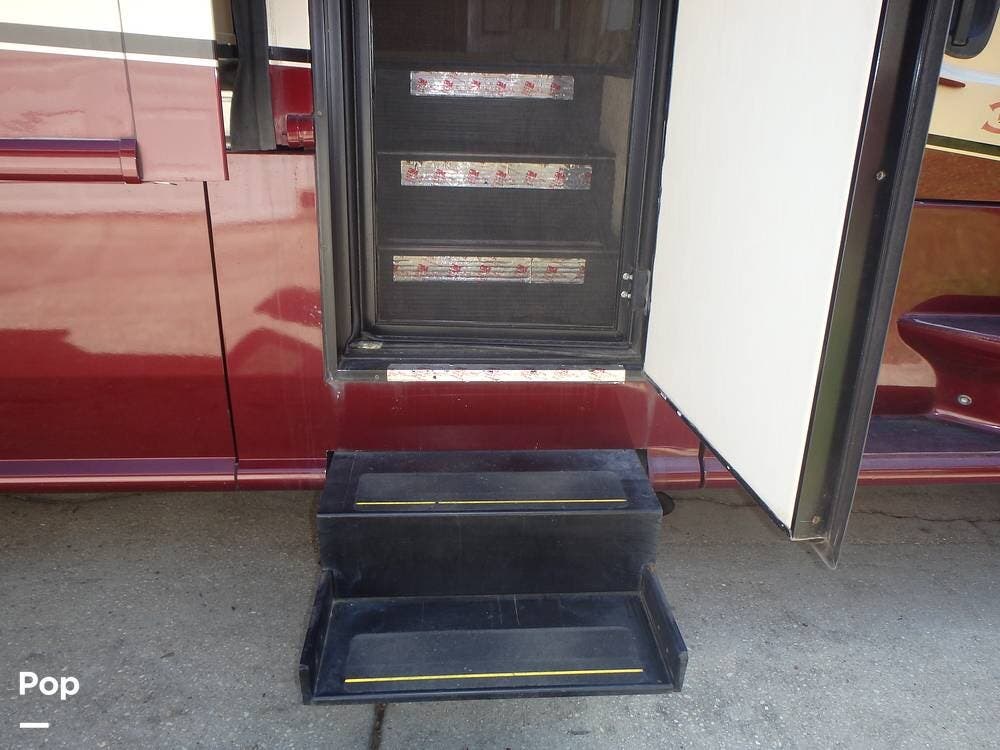 The exterior features full-body paint, three slide-outs, large basement storage compartments, and power awning, creating both a high-end look and a functional outdoor living space. Air suspension and air brakes provide a smoother ride and better control compared to lighter motorhomes, reinforcing its position as a premium, heavy-duty coach.
