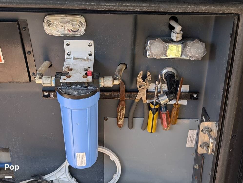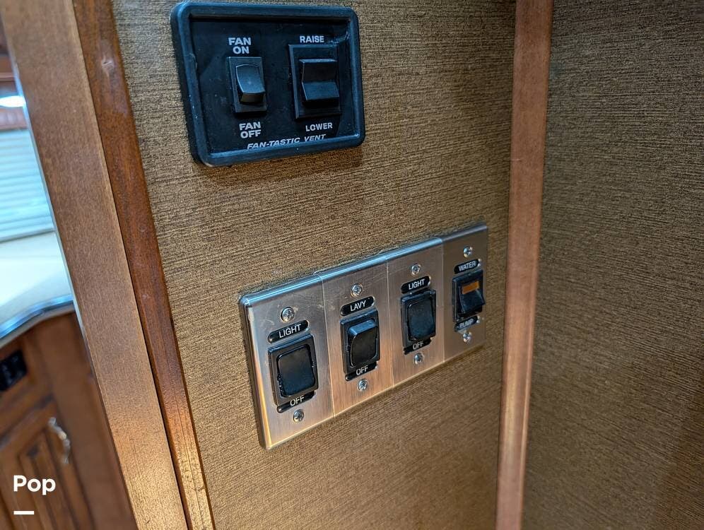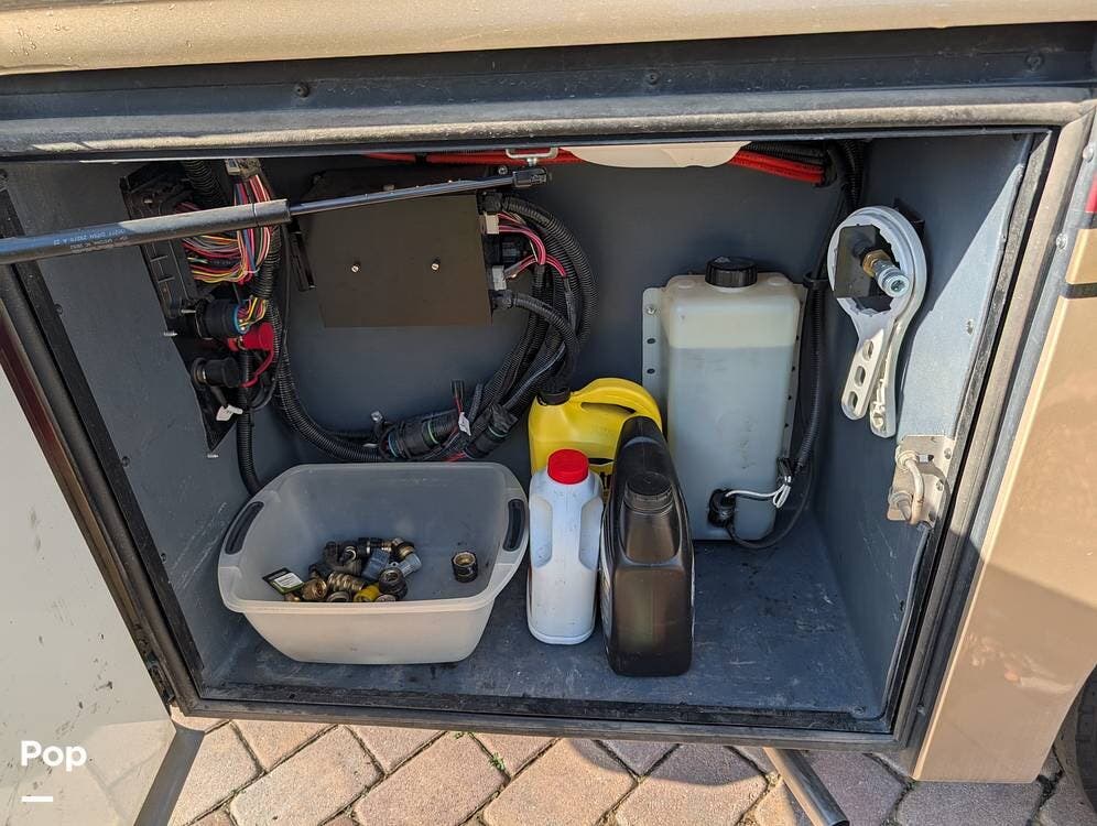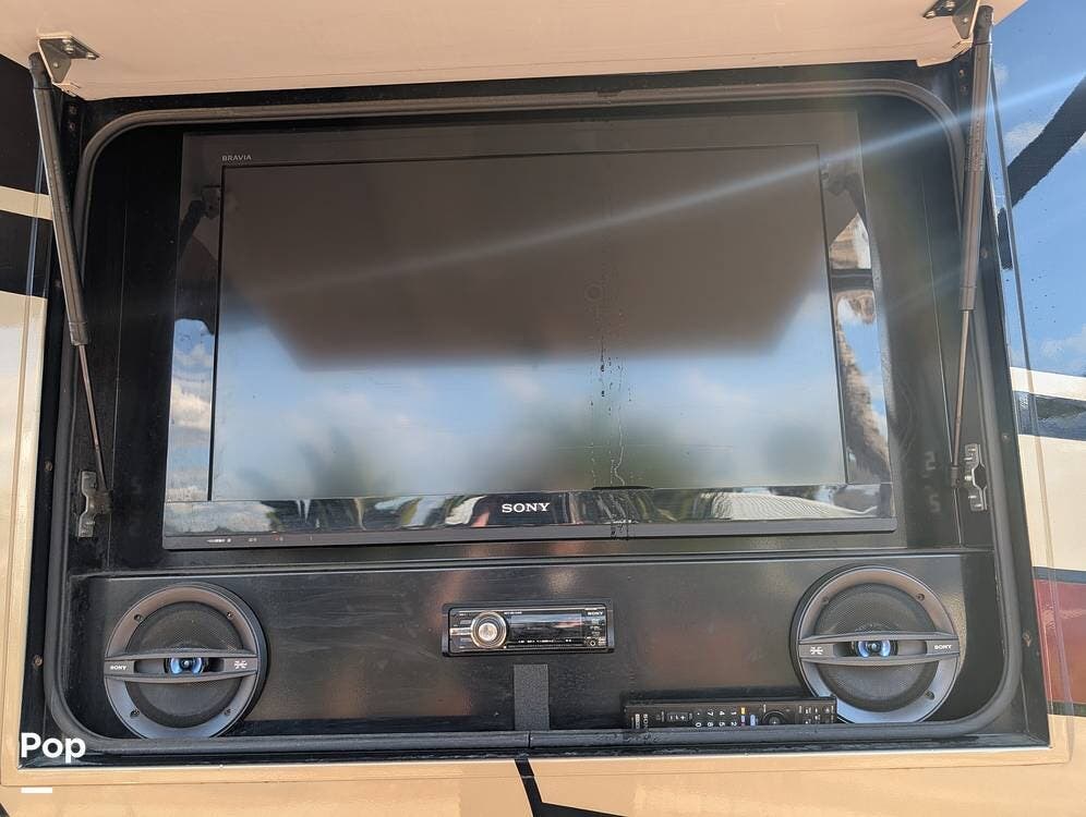 The exterior is equally impressive, featuring a power patio awning, additional window and door awnings, and an outdoor entertainment system. Generous basement storage with slide-out trays allows for easy organization and access to equipment and gear. Built with the solid construction and craftsmanship synonymous with Fleetwood, this Discovery offers a level of durability and quality rarely found in many newer models--making it an exceptional choice for long-term travel or full-time living.