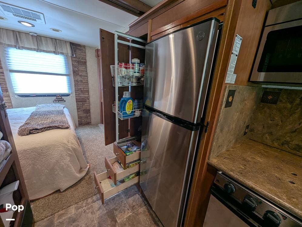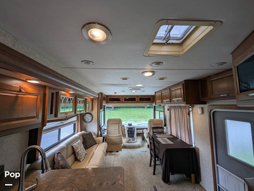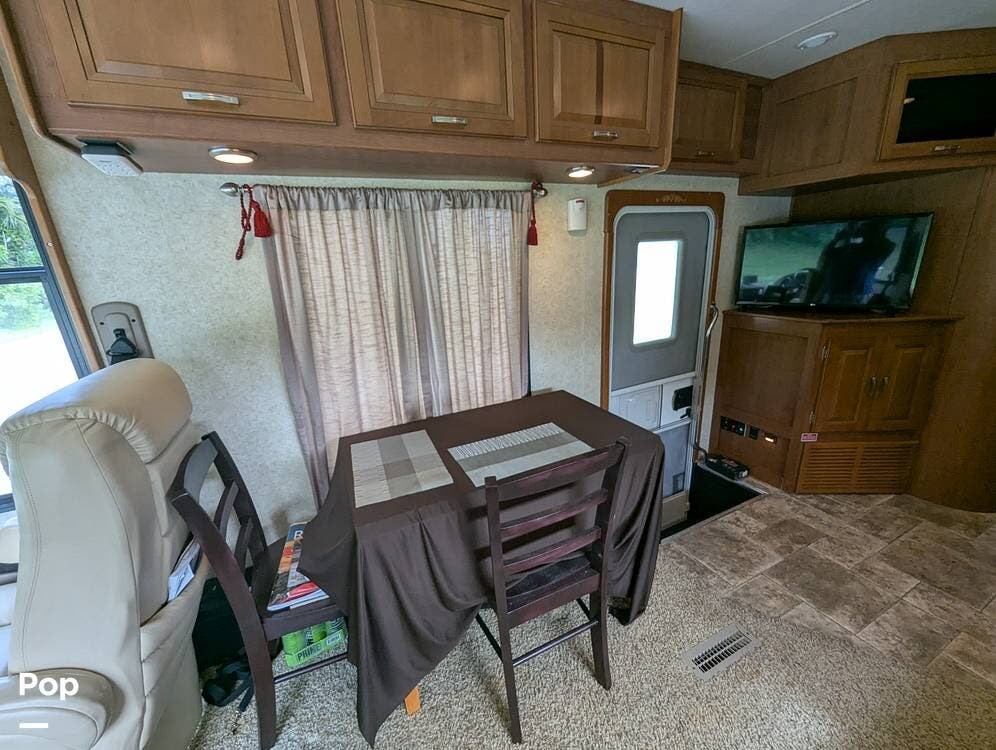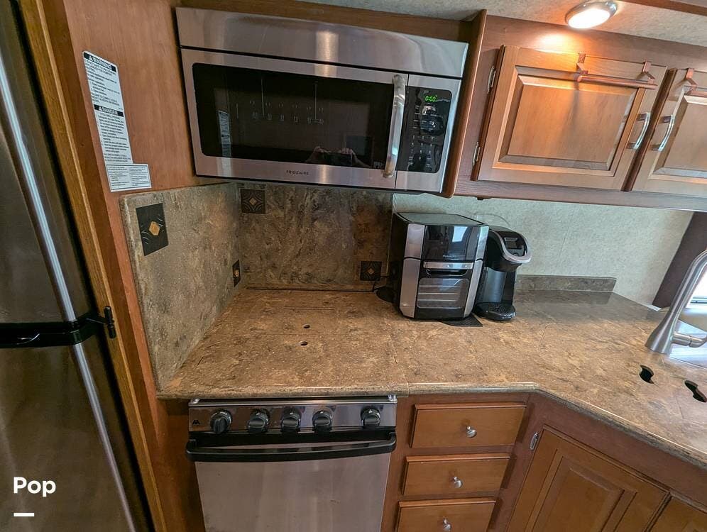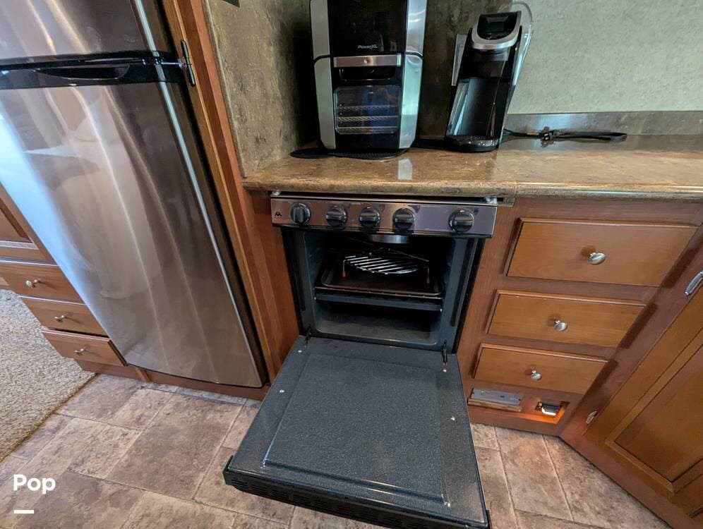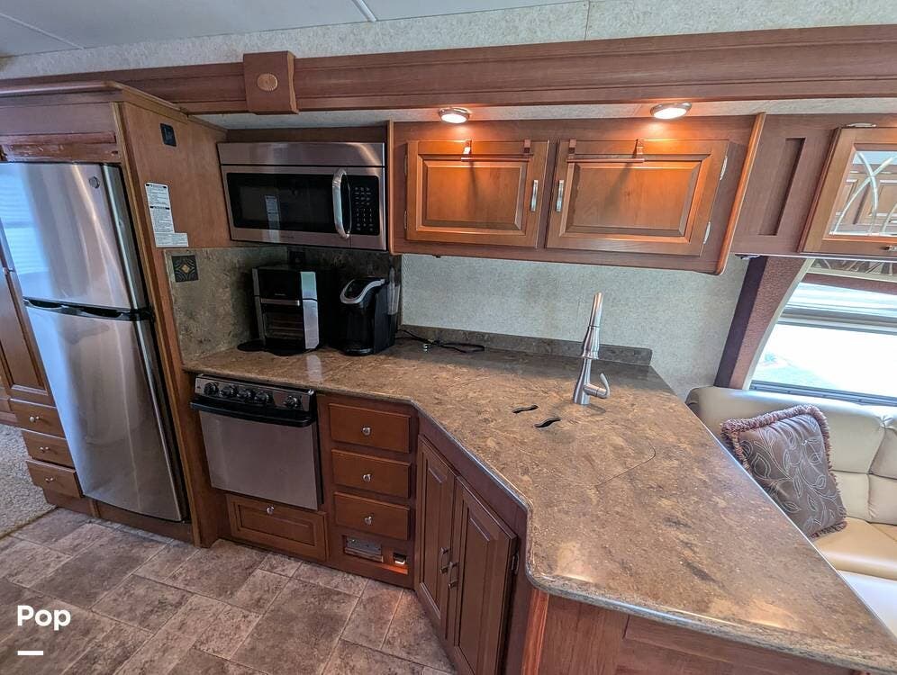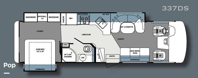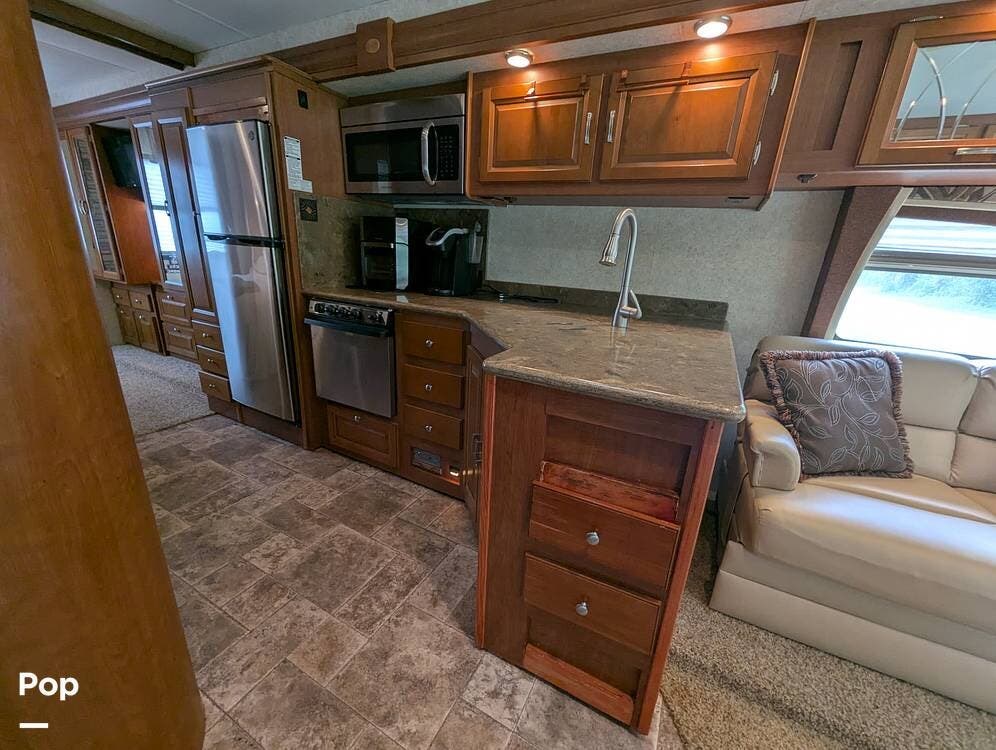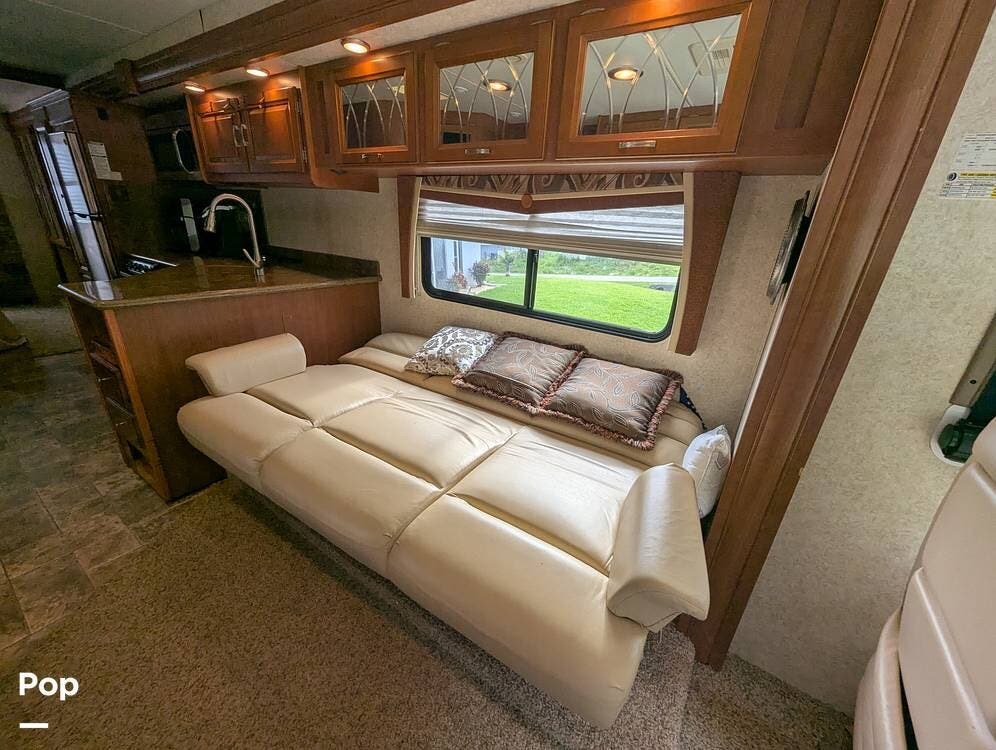 This 2012 Georgetown 337DS has a full side slide, which opens this RV to a comfortable living space! The sofa is comfortable and converts to a bed for guests.