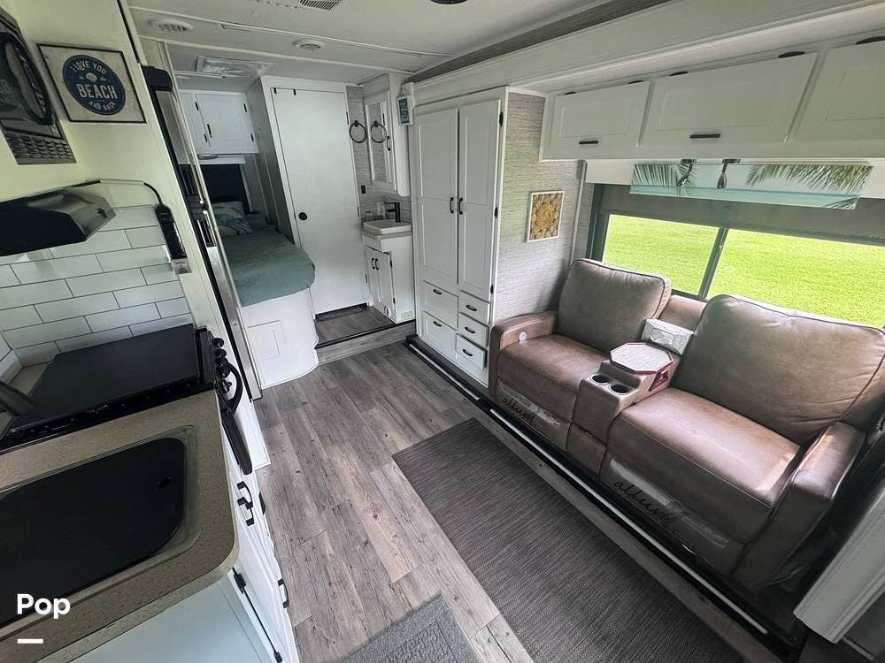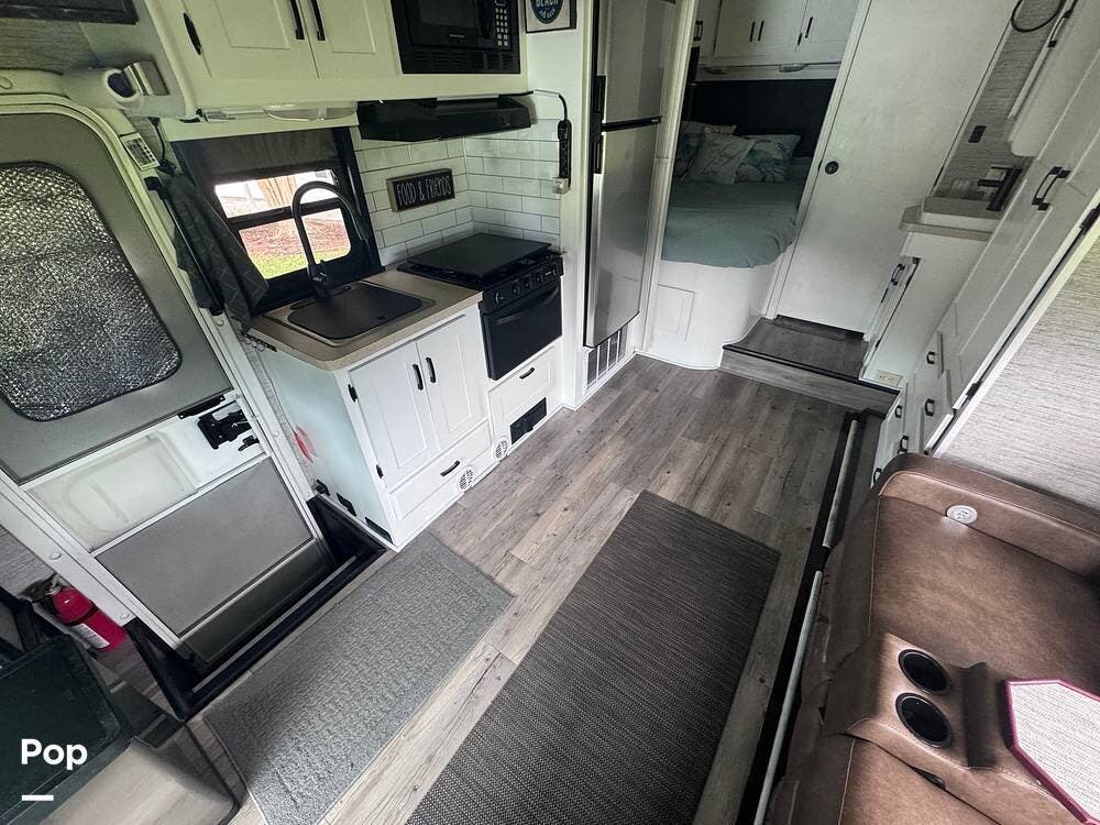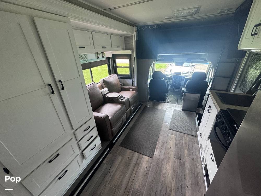 Large windows provide ample natural light, and the slide-out expands the interior space, making it feel significantly larger than expected in a compact Class C.