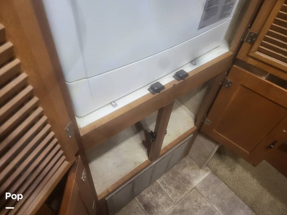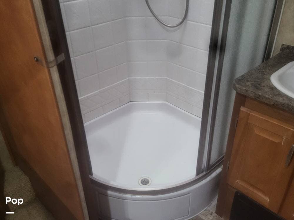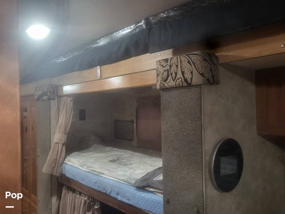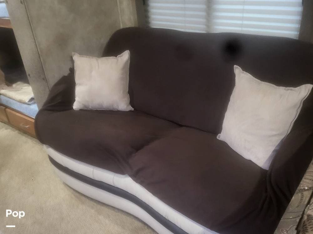 This RV is loaded with options for convenience and comfort. Enjoy camping with two-zone heat and air conditioning, a full kitchen, one and a half baths, and a generator.