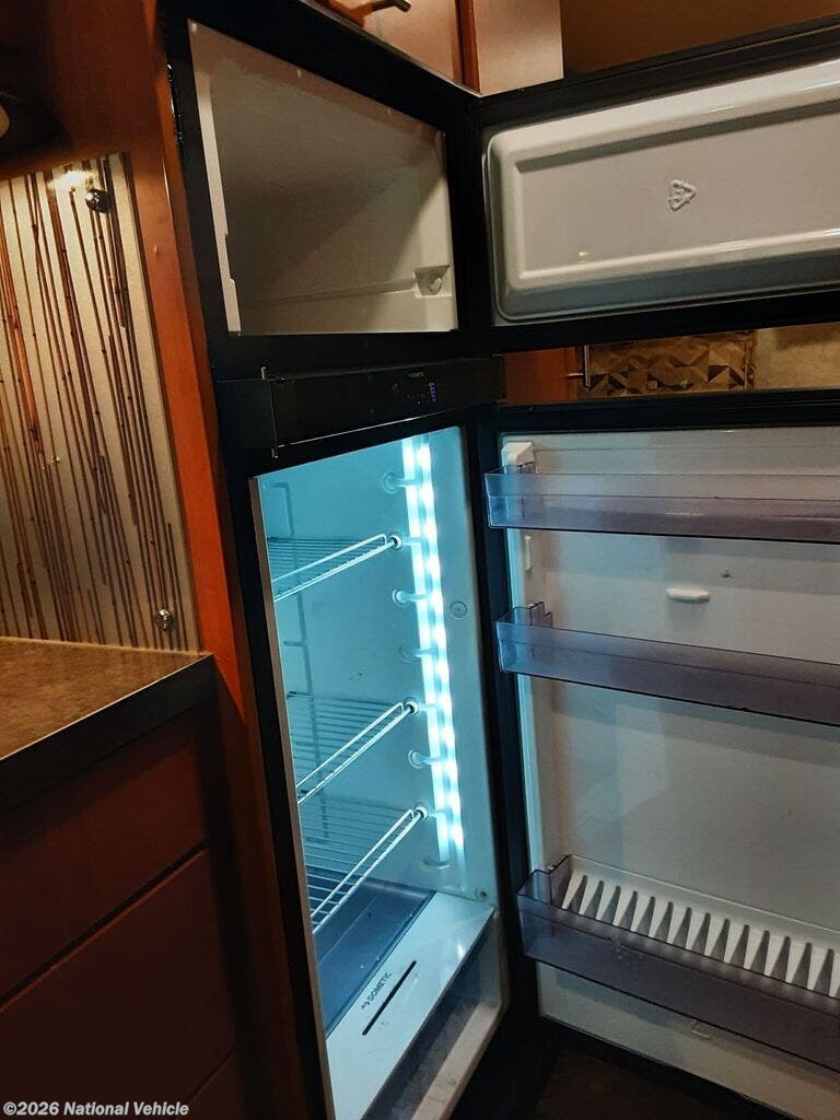 Step inside and take a look back at all of the convenient features that would make any journey enjoyable. The kitchen area features everything you need to prepare great meals on the go including a sink, a two burner range with microwave/convection oven, and a residential refrigerator/freezer. There is also plenty of storage for all of your dry and canned goods. Have a seat at the comfortable free standing dinette, where you can enjoy meals with your family.