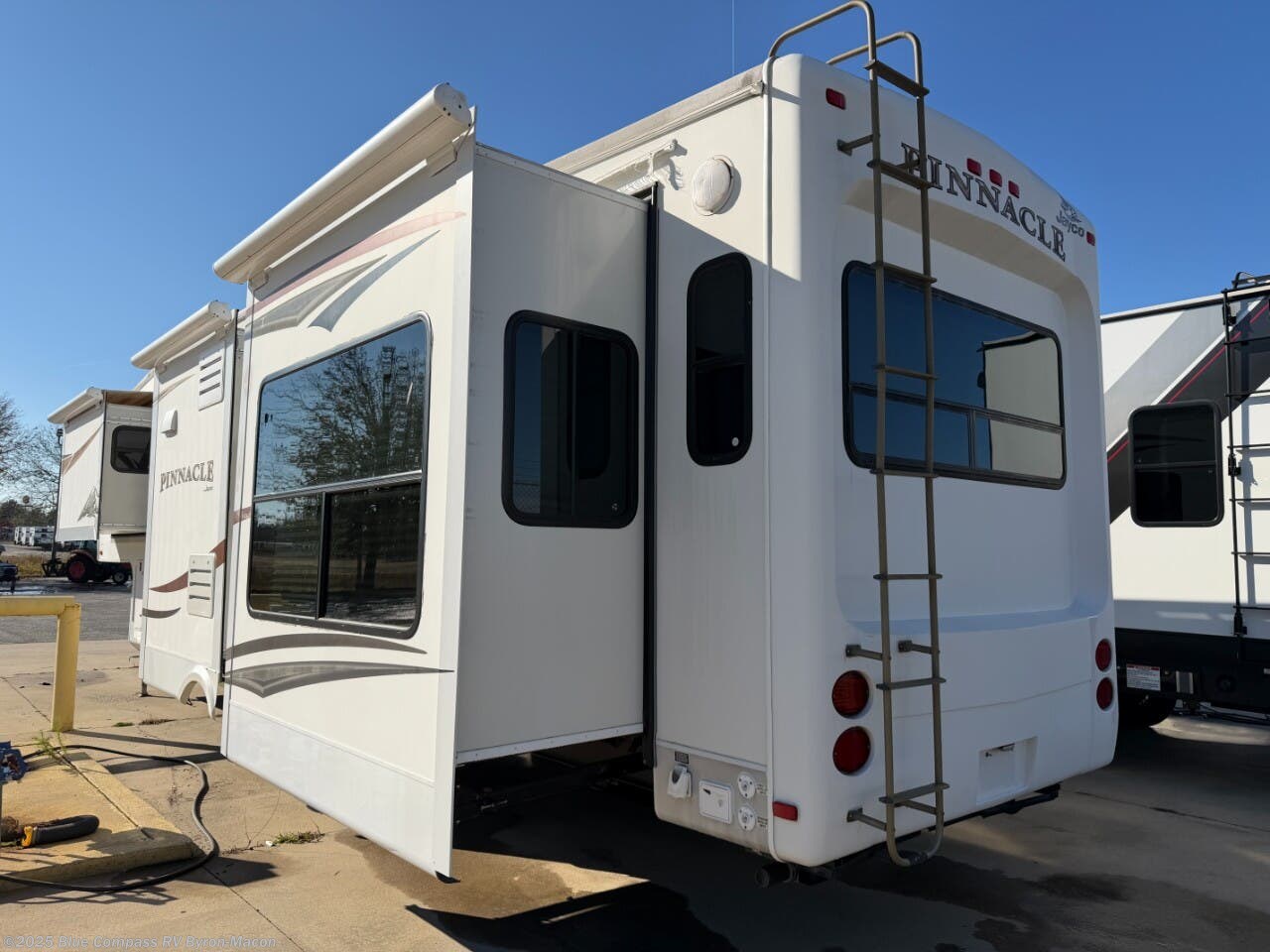 This 2012 Jayco Pinnacle 36REQS is jam-packed with features to make RVing better than ever. This 2012 Jayco Pinnacle 36REQS welcomes you into the Jayco family! The sleep capacity allows you to bring up to 4 along on your travels in this rig. This rig cuts no corners on space, expanding into a massive living area with 4 slides. The 87 gallon fresh water tank is just right for easy RV traveling. While the inside of this rig is enough on its own, the outside also features slideout.