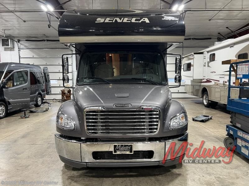 Double Slide Seneca Motor Home, Rear Bedroom w/King Bed Slide, Chest, Ward./Dresser, TV, Lav., Med. Cab., Shower, Linen, Toilet, Entertainment Center, Hide-A-Bed/Dinette Slide, Cab-Over Queen Bed, LCD TV/DVD, Storage, Pantry, Refrigerator, Microwave, 3-Burner Range, Double Kitchen Sink, Overhead Cabinets Throughout, 18' Awning & Much More. Available Options May Include: Washer/Dryer, Dinette Ensemble, Free-Standing Table & Chairs, Entertainment Center w/Pullout Bunk, Fireplace.