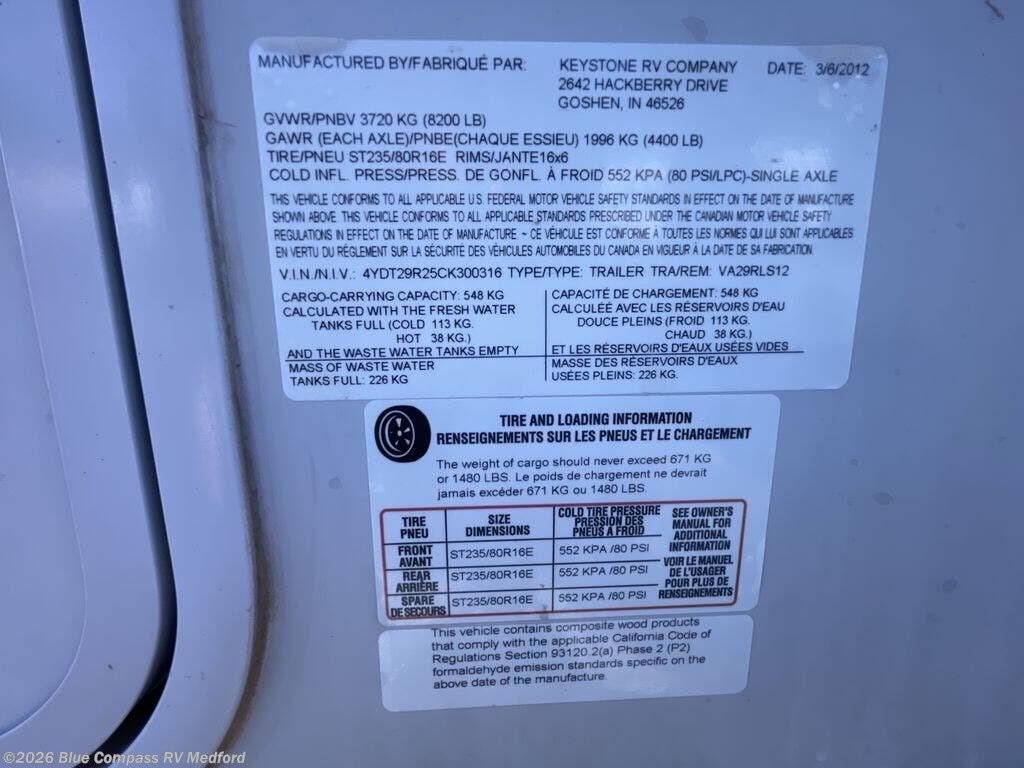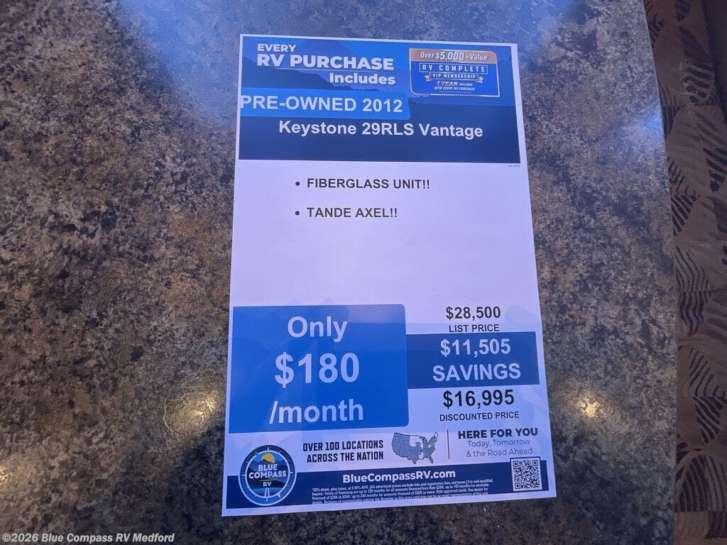 Request More Info on this 2012 Keystone Vantage 29RLS Offered for sale by Blue Compass RV Medford