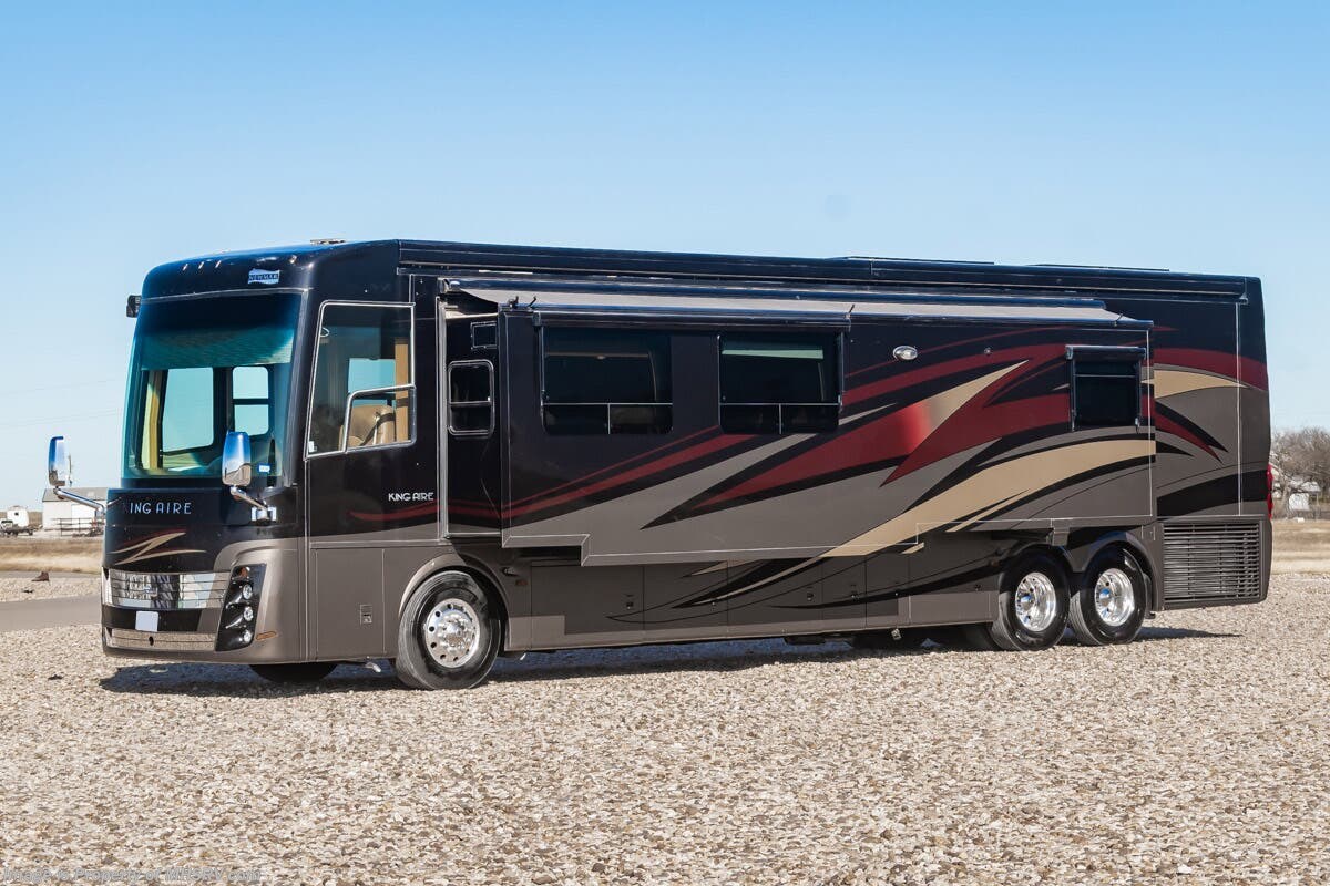 Used Newmar RV for sale – 2012 Newmar King Aire 4584 is approximately 45’ 0” in length with 106,529 Miles, 3 slides and features HWH leveling system, aluminum wheels, full body paint, 3 camera system, 3 A/C's, Onan 12.5KW diesel generator, satellite dish, Cummins 600HP diesel engine, Spartan chassis, tilt/telescoping steering wheel, secondary engine brake, tire monitoring system, power pedals, power visor, keyless entry, cruise control, power windows, water manifold, patio awning, door awning, window awning, cargo tray, pass through storage, black tank flush, water filtration system, power water hose reel, power electrical reel, exterior shower, exterior TV, clear paint mask, solar, inverter, ceramic tile, all electric coach, leather seating, combination washer/dryer, heated floors, dual pane windows, multi-plex control panel, hardwood cabinets, convection microwave, residential refrigerator with ice maker and much more. For additional details on this unit and our entire inventory including brochures, window sticker, videos, photos, reviews & testimonials as well as additional information about Motor Home Specialist and our manufacturers please visit us at or call 800-335-6054 for our Texas location or 334-288-0331 for our Alabama location. At Motor Home Specialist, we DO NOT charge any prep or orientation fees like you will find at other dealerships. Read Thousands upon Thousands of 5-Star Reviews at and See What They Had to Say About Their Experience at Motor Home Specialist.