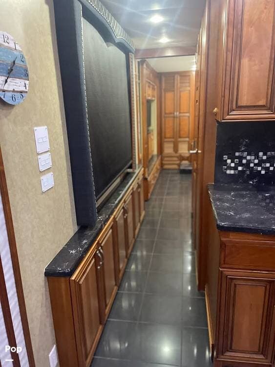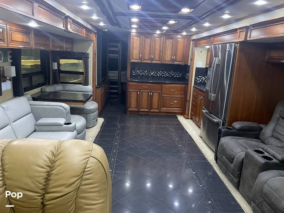 Step inside, and you'll immediately notice the attention to detail for which Newmar is known. The spacious floor plan features four slide-outs, creating a residential feel with plenty of room to relax and entertain. The living area is appointed with premium furnishings, beautiful cabinetry, solid-surface countertops, and upscale finishes throughout. A fully equipped kitchen makes meal prep a breeze, while the cozy dinette and plush seating provide the perfect spot for family gatherings or quiet evenings.